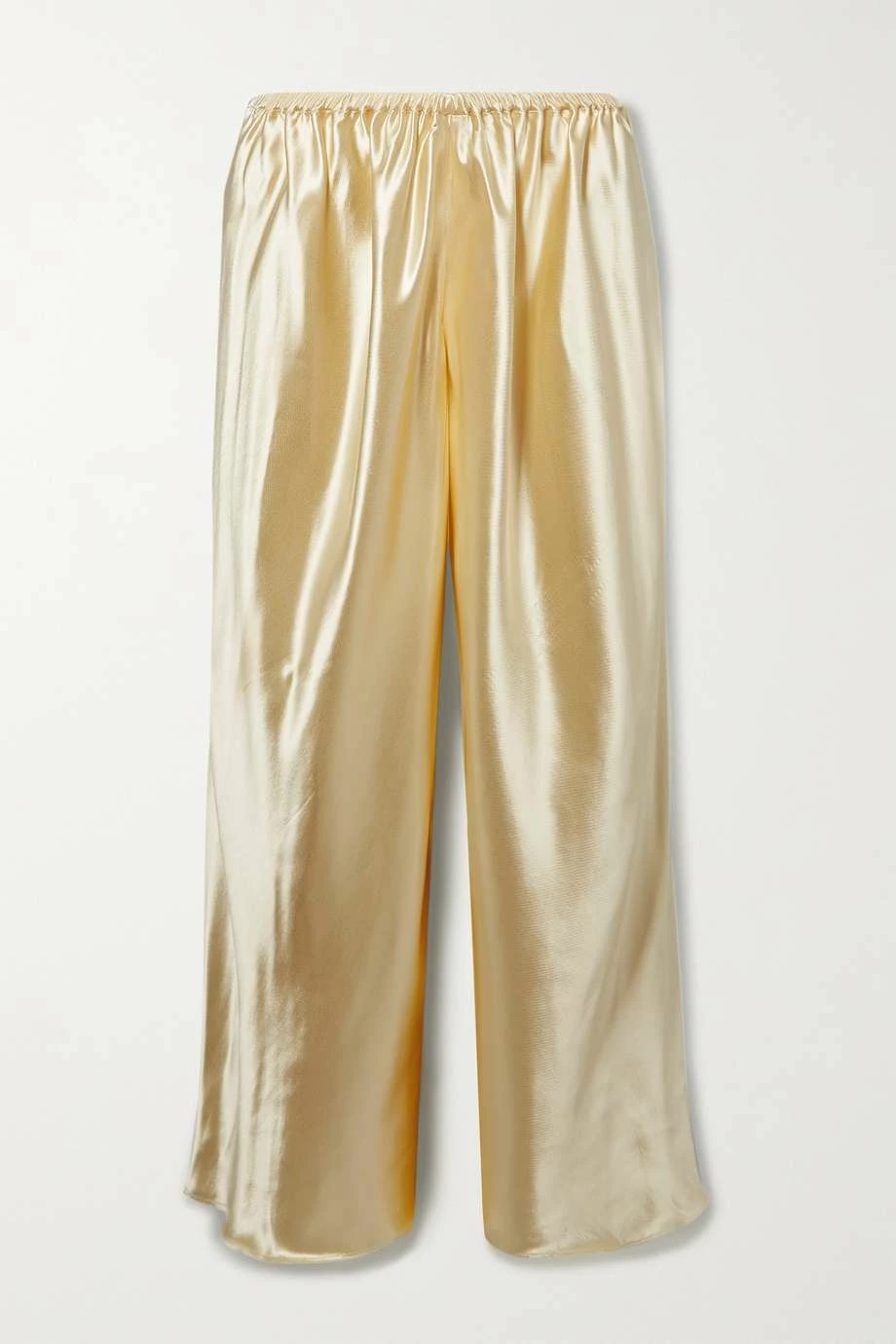 Khaite’s ‘Lindy’ pants are made from lustrous silk-satin in a fluid, wide-leg silhouette. Part of the Spring ’22 collection, they have a gathered elasticated waistband and slightly cropped hem. Keep your look casual with a simple T-shirt and sandals.