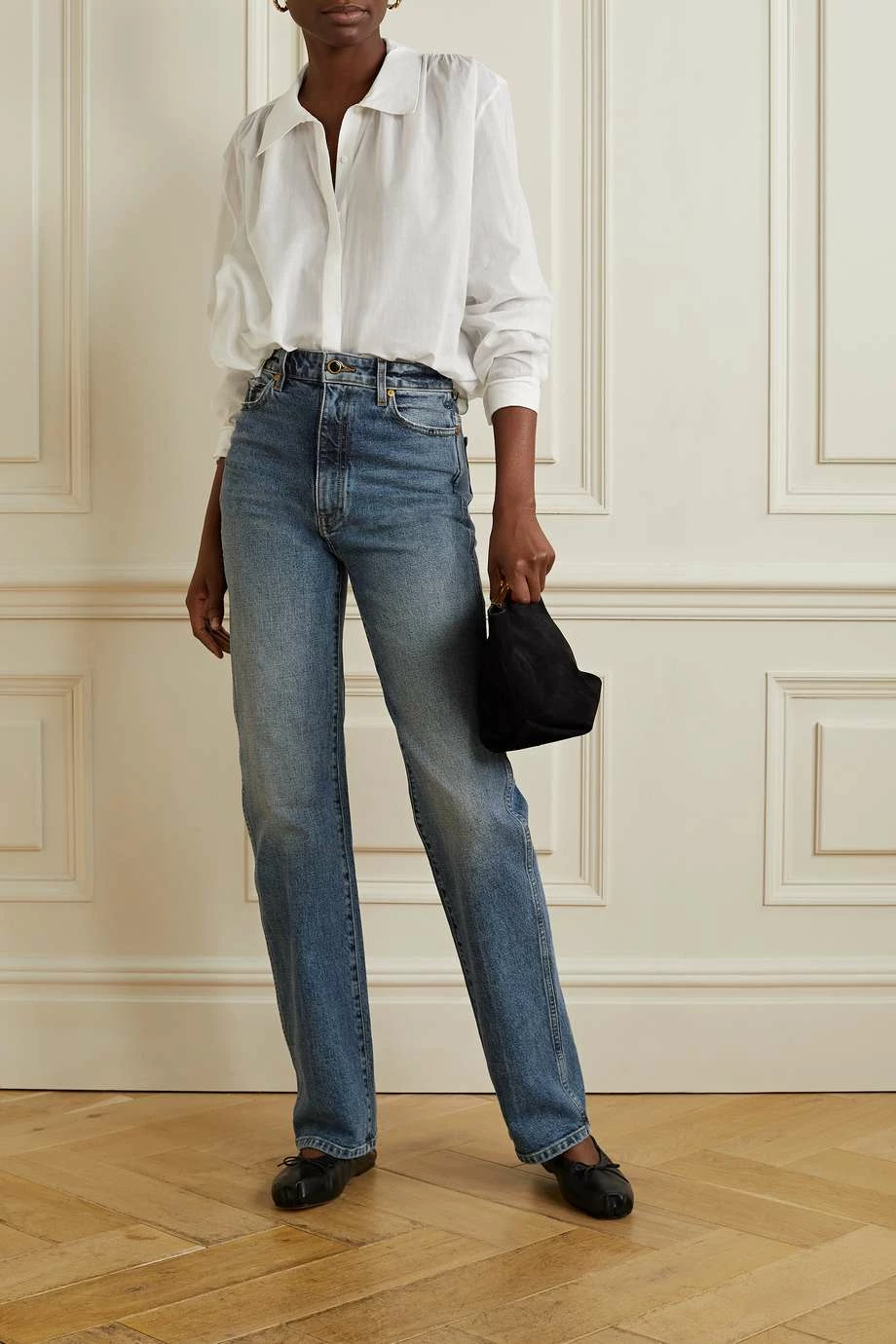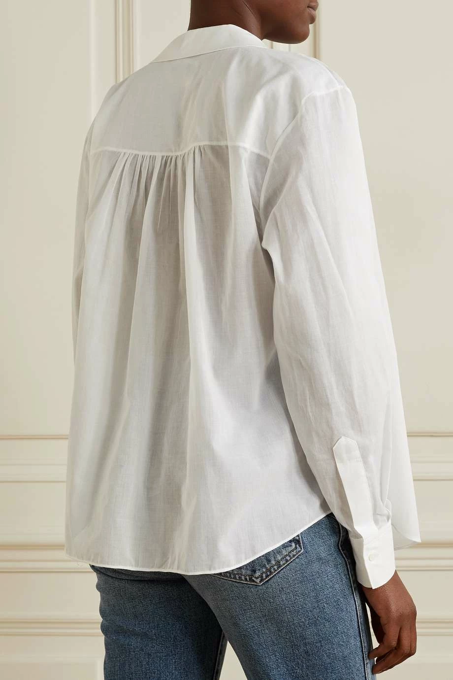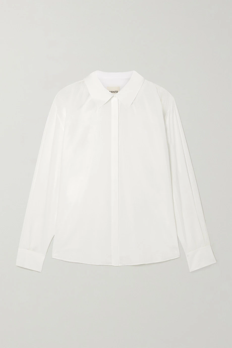 Khaite’s ‘Lucien’ โshirt is cut from white cotton-voile that’s lightweight and breathable. It’s designed in a relaxed silhouette with gathered details along the shoulders and back and has a neat collar. Wear yours tucked into tailoring or denim.