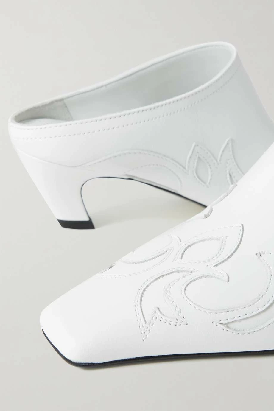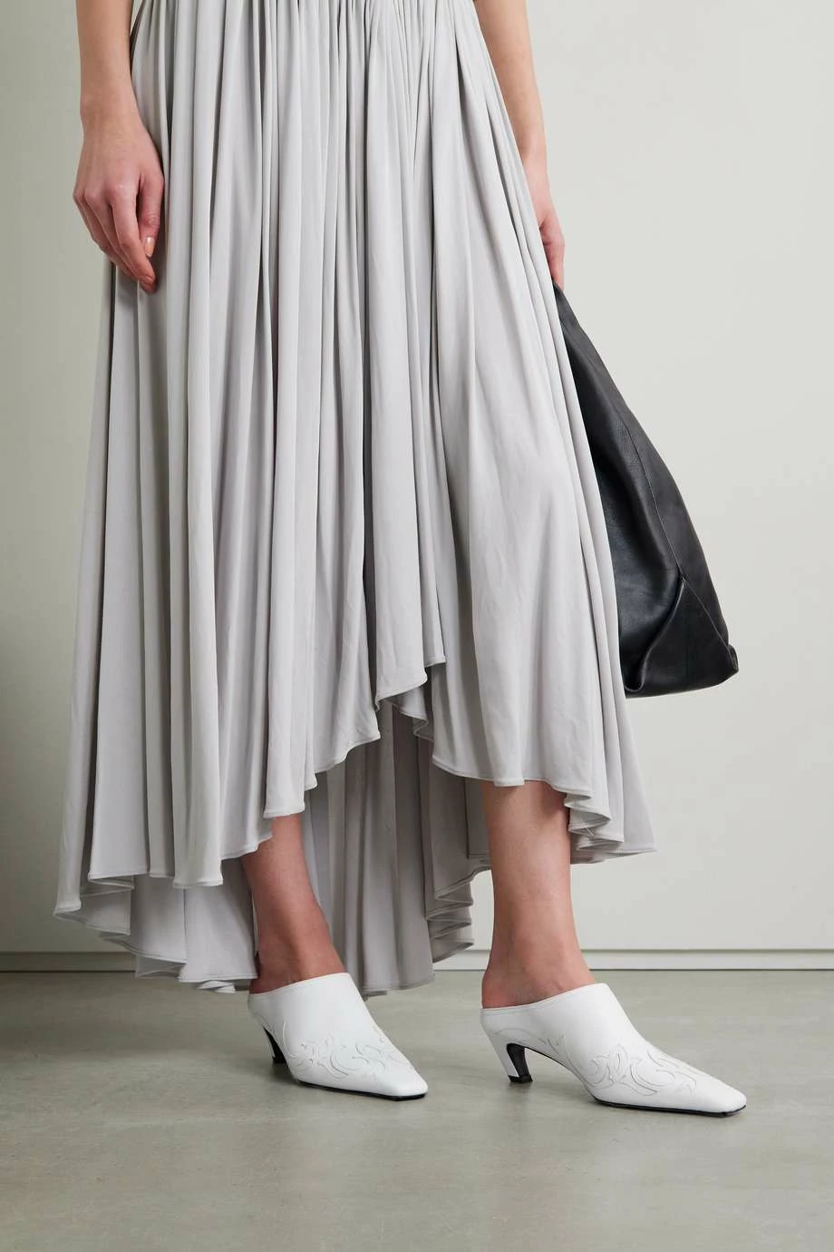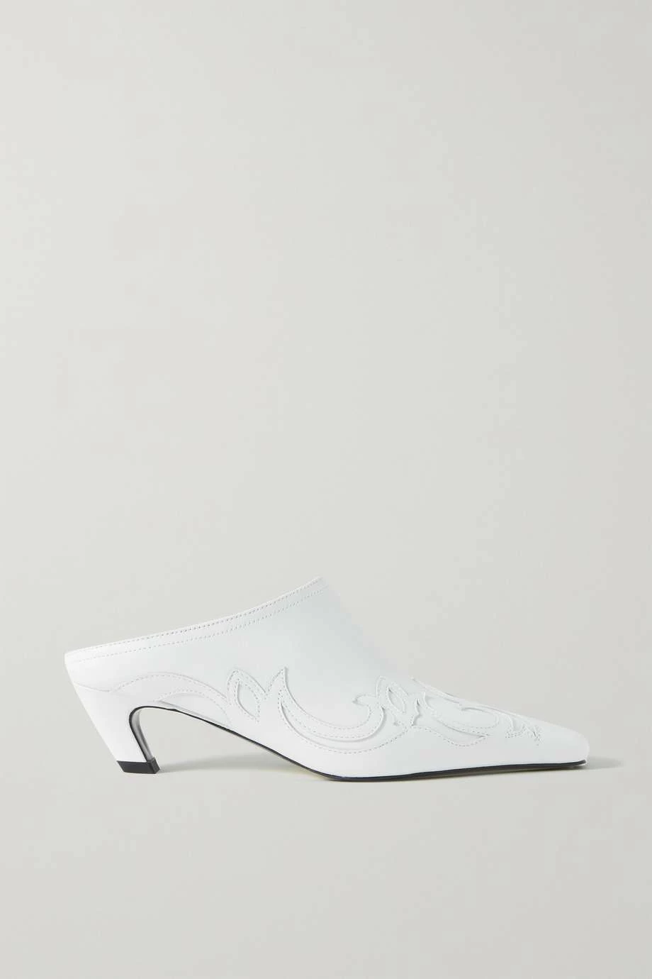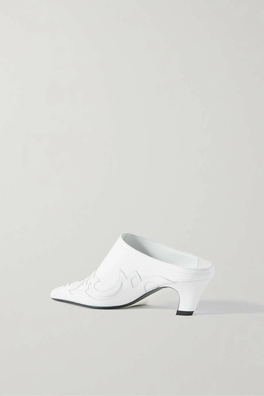 Khaite’s ‘Madison’ mules have been made in Italy from white leather that’s subtly appliquéd with Western-inspired detailing. They have elongated square toes and rest on curved 45mm heels. Wear yours with everything from jeans to dresses.
