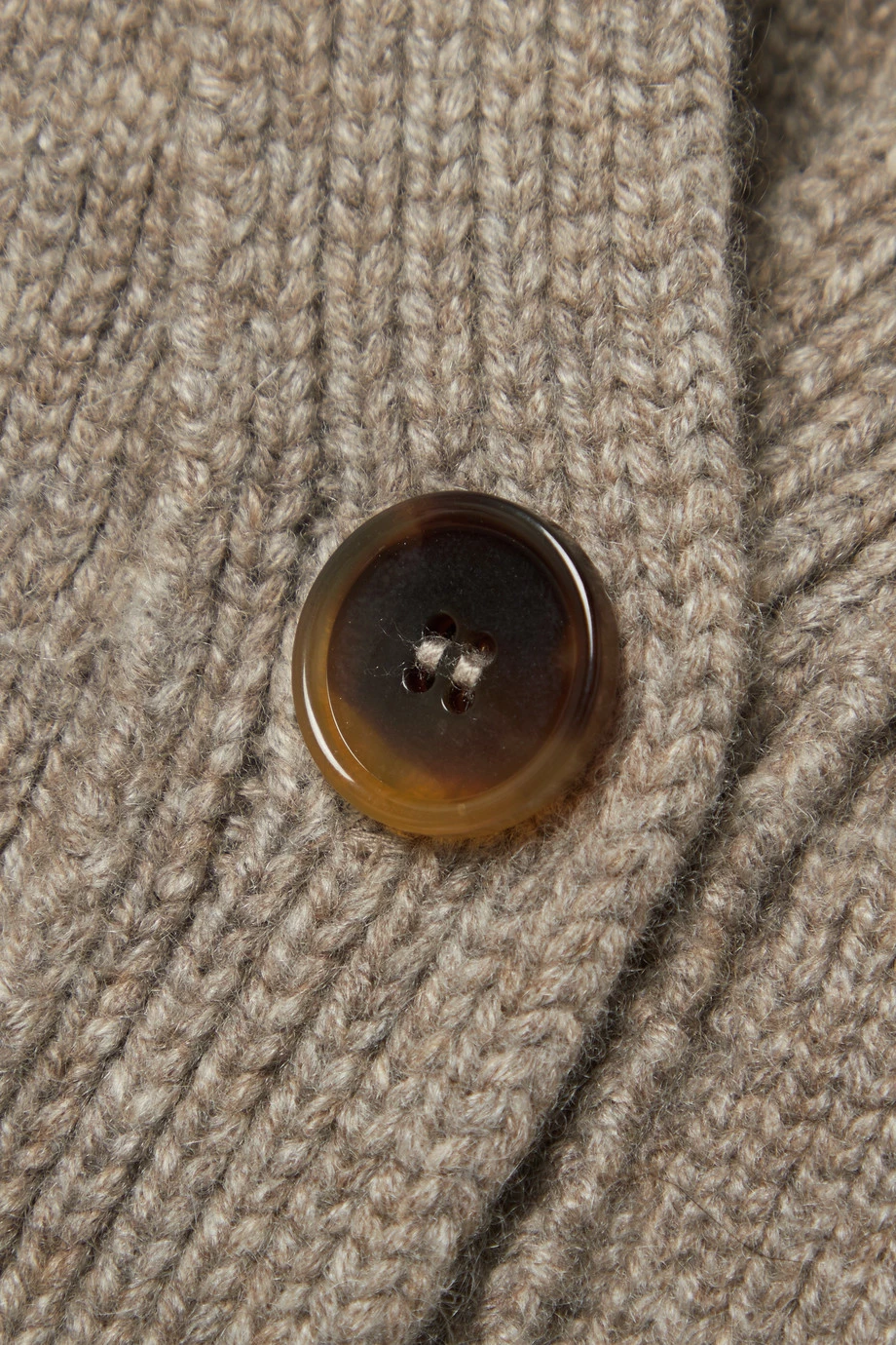 Khaite’s ‘Scarlet’ cardigan is spun from Mongolian cashmere, specifically chosen for its exceptional softness. Dyed a versatile tan hue, it’s designed for a relaxed fit and has long, knuckle-grazing sleeves and cozy ribbed trims. Wear it with the matching bra.