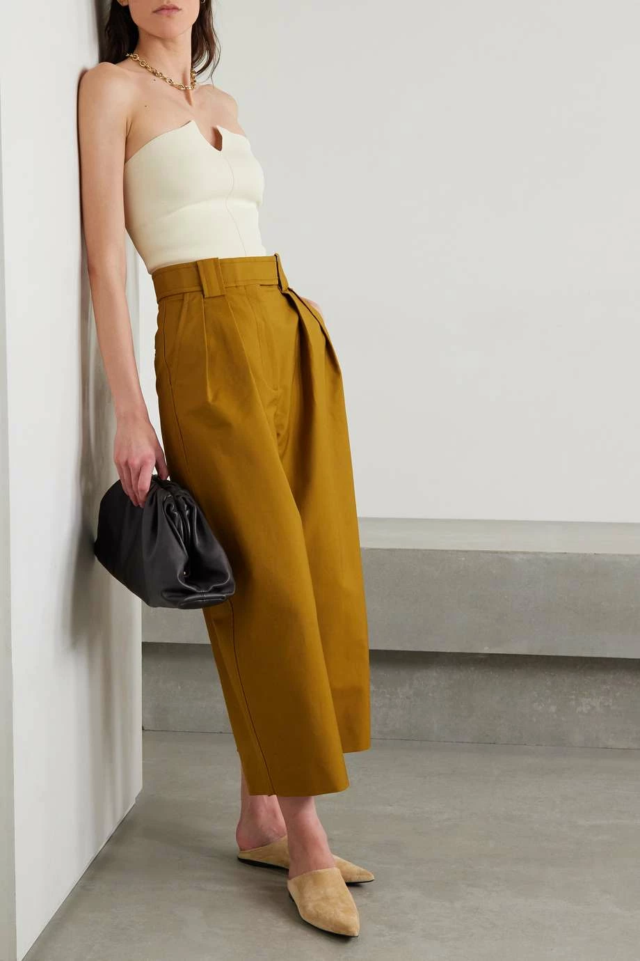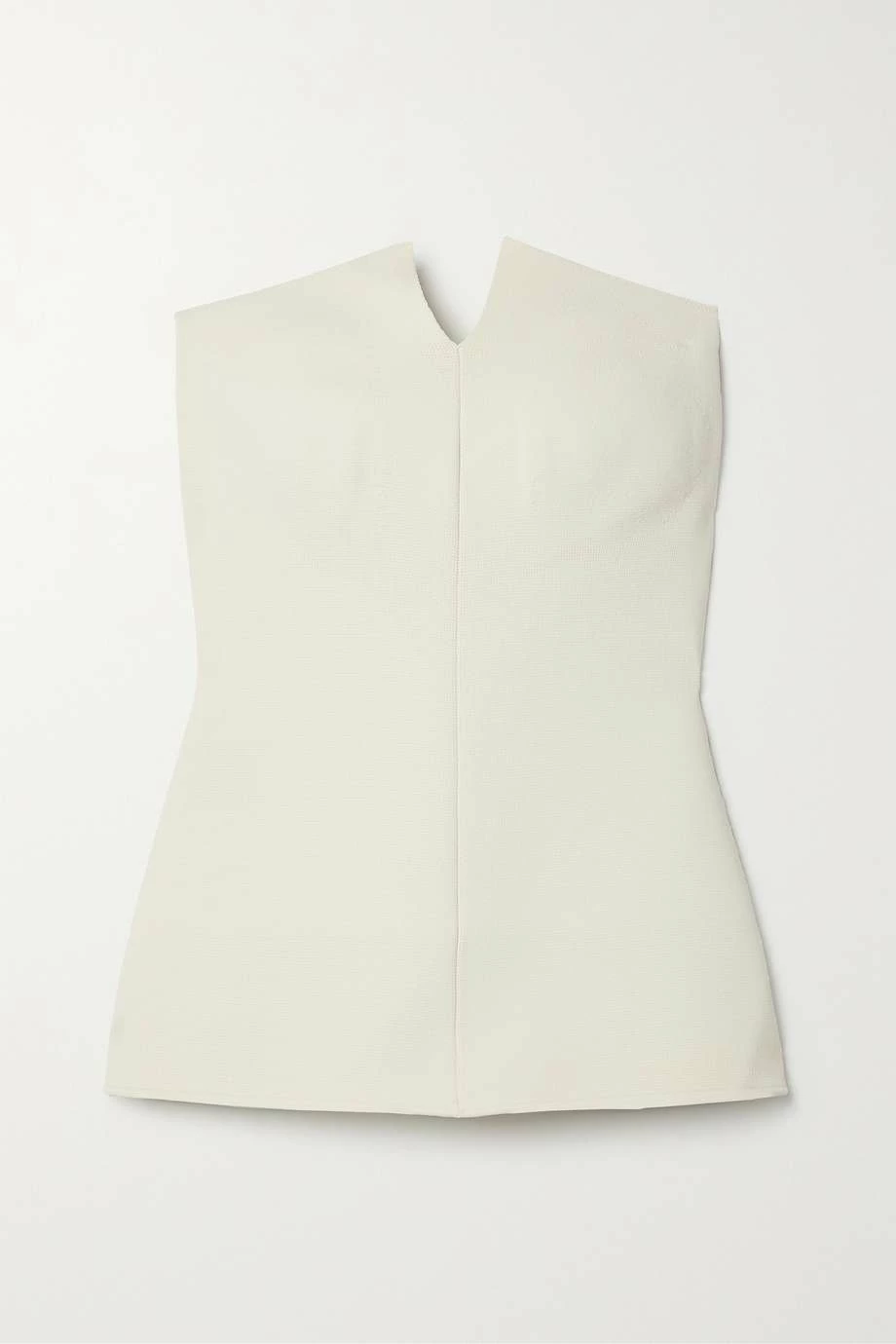 Khaite’s ‘Punto’ top is cut for a close fit from stretch-knit that gently flares out at the waist for a subtle peplum effect. It has an angled strapless silhouette and vertical front seam to streamline and lengthen your frame.