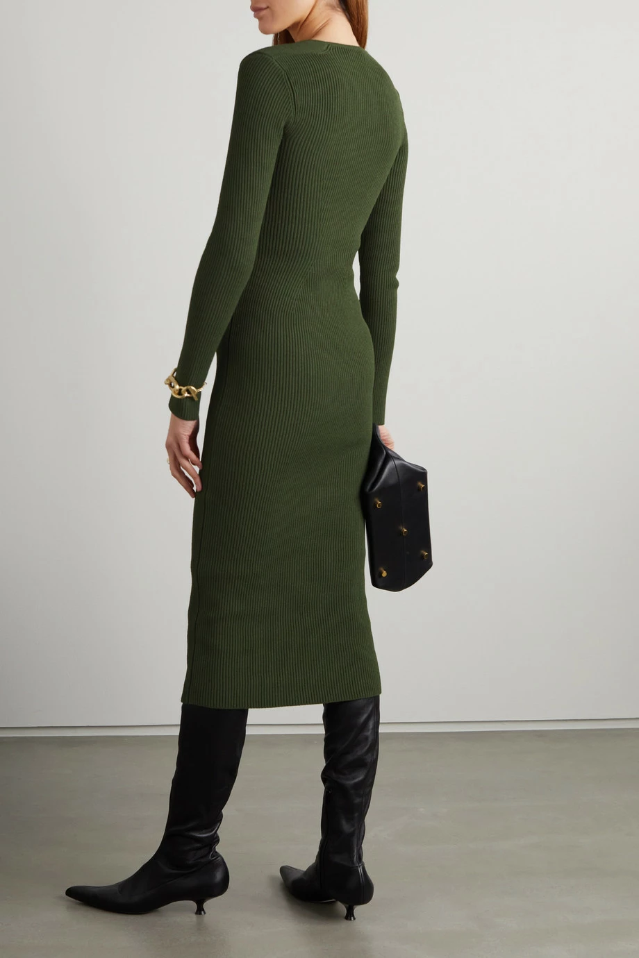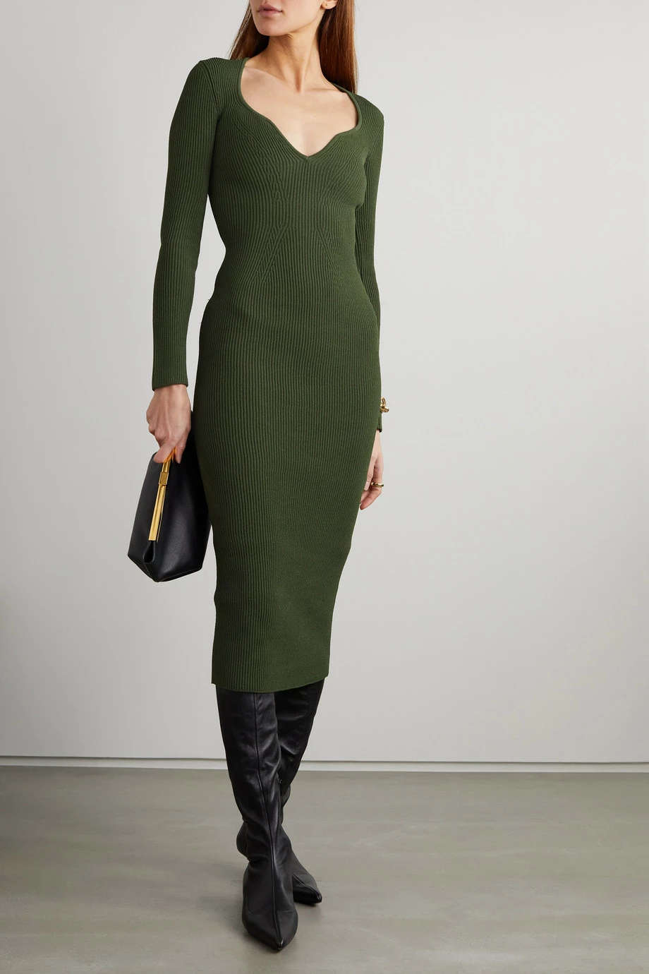Khaite’s ‘Alessandra’ midi dress has an elegant sweetheart neckline that elevates the otherwise minimal silhouette. It’s rib-knitted for a sculpting fit and subtly nips in at the waist. Wear yours with slides or heels.