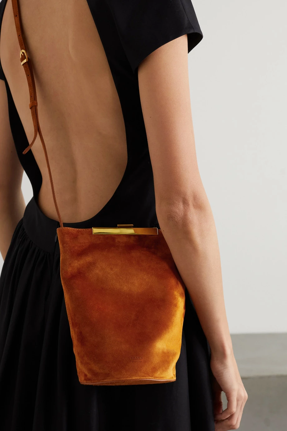 Khaite’s ‘Etta’ bucket bag is inspired by travel and designed for the practicalities of day-to-day life. Crafted in Italy from soft suede, it’s is lined in durable cotton-grosgrain and has a gleaming gold-tone frame. The shoulder strap is adjustable, so you can lengthen the drop to carry it cross-body.