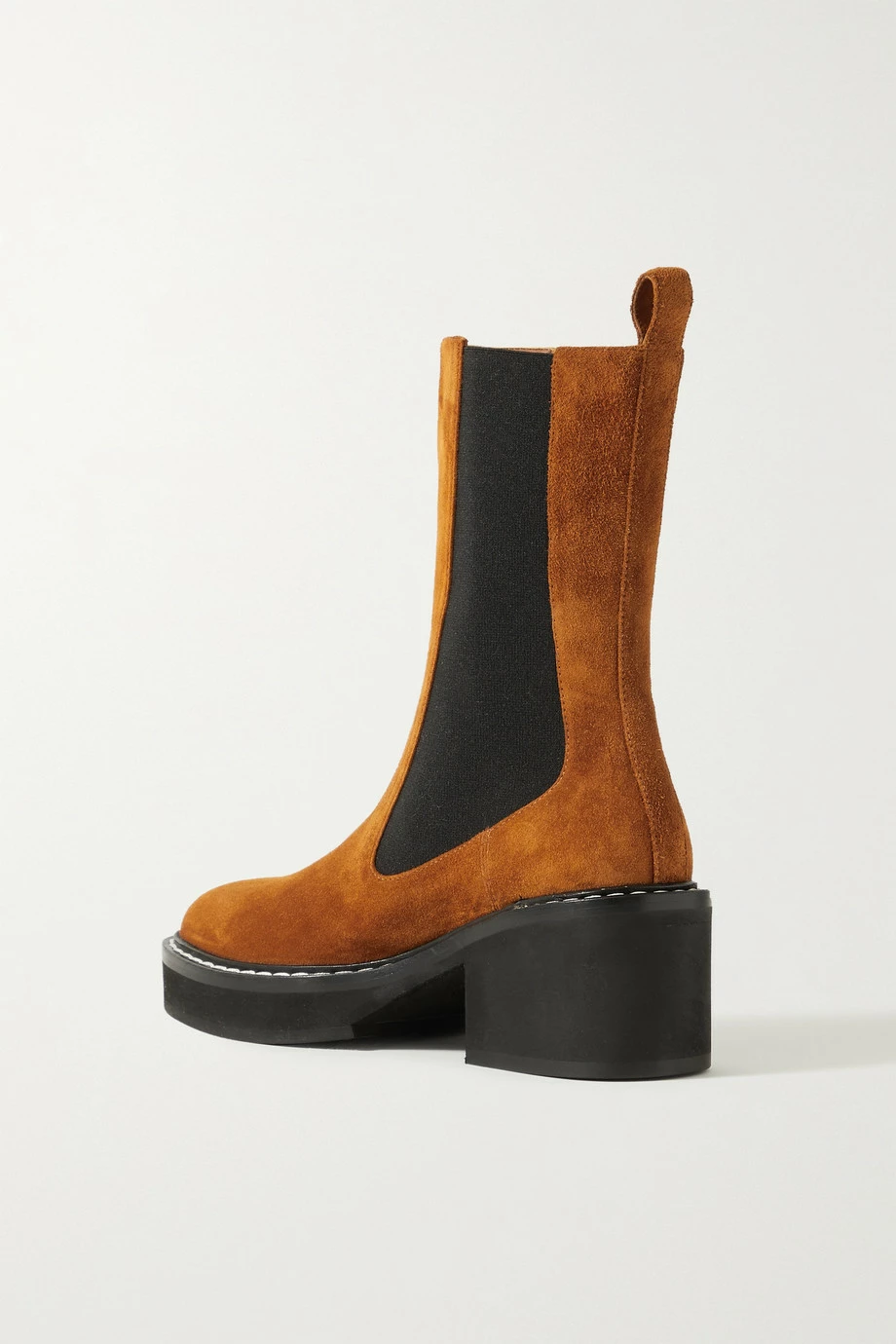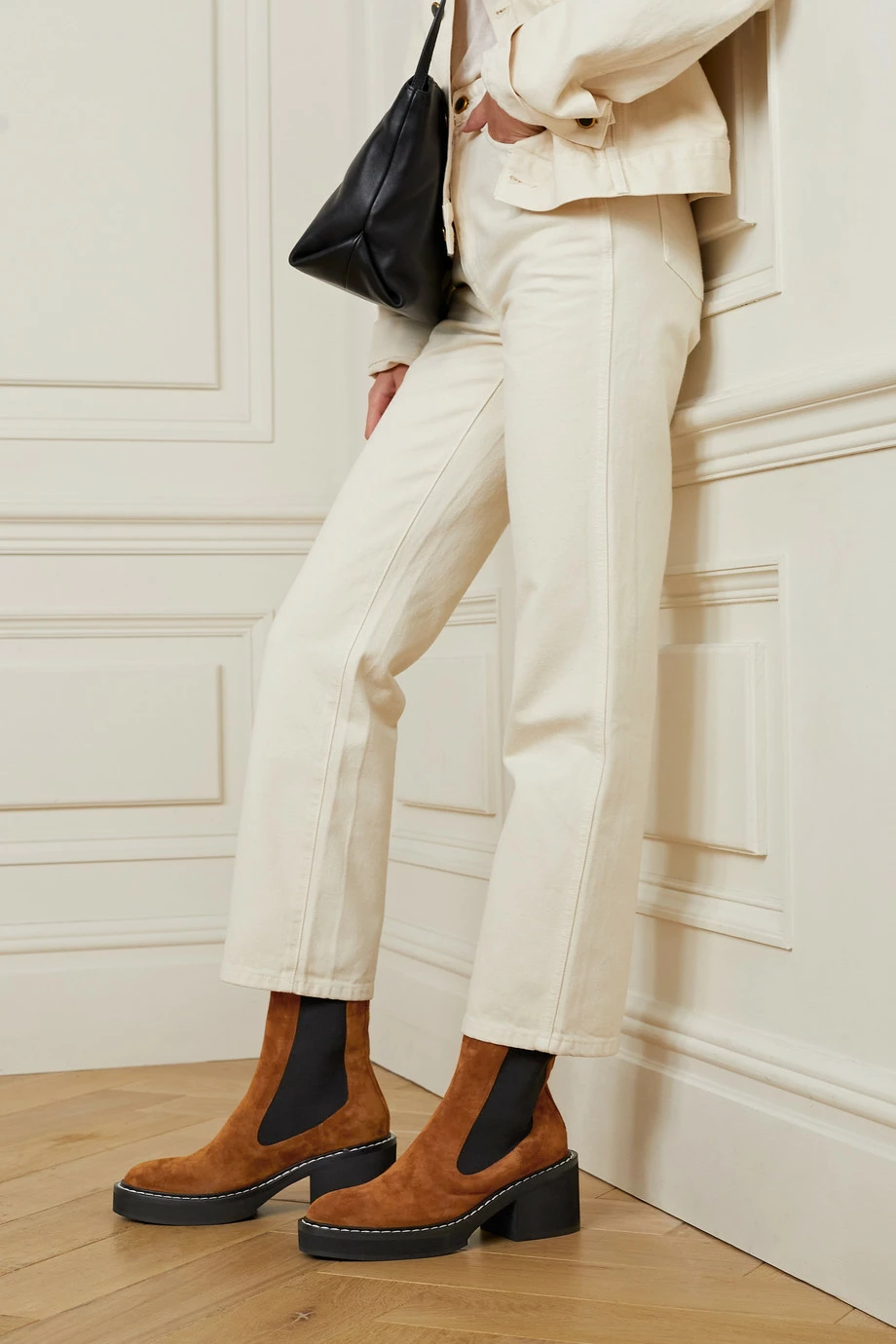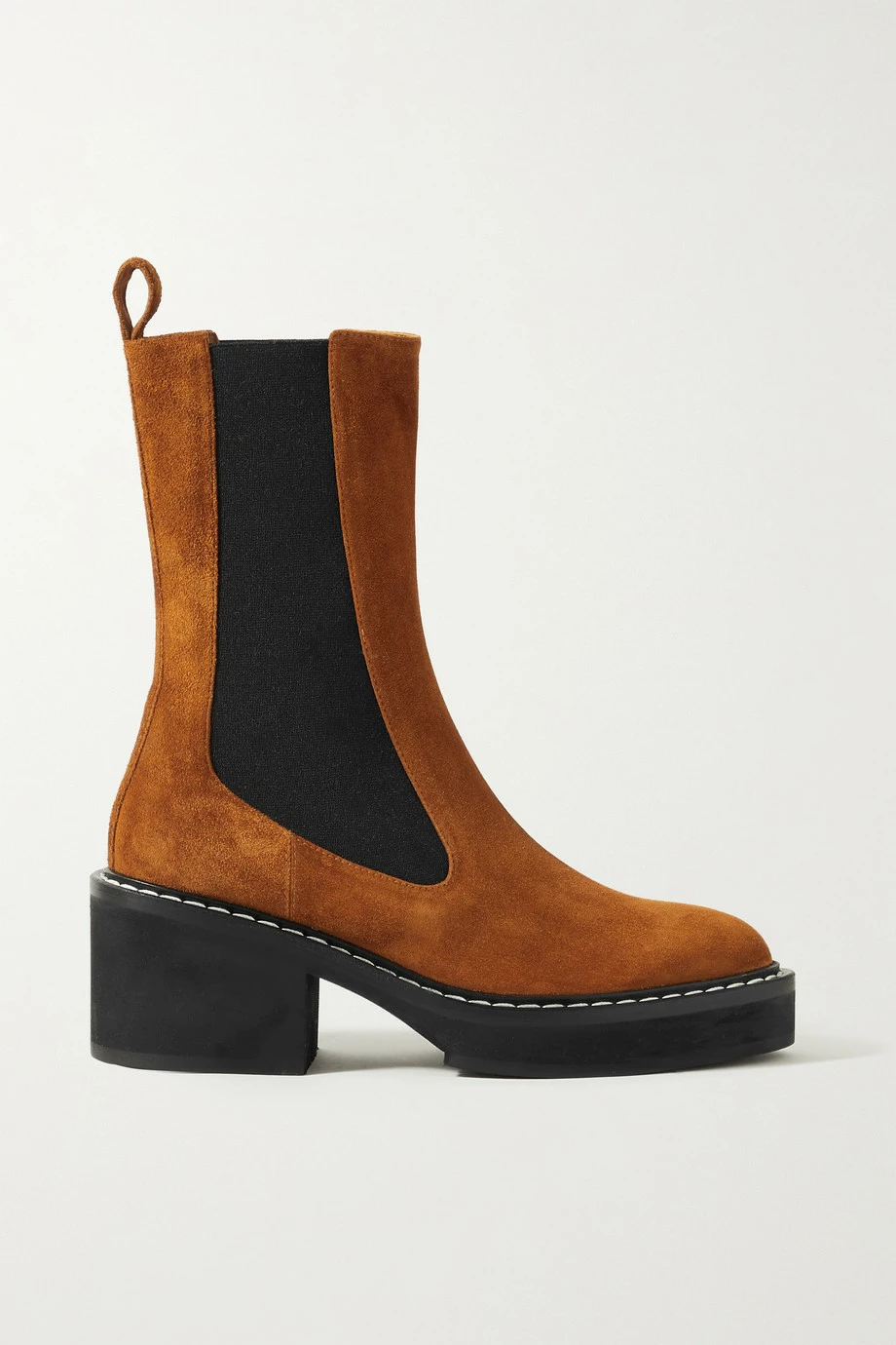 Khaite’s ‘Calgary’ Chelsea boots are made from velvety brown suede and have traditional elasticated inserts at the sides for a flexible fit. They’re set on sturdy 50mm heels and traced with signature white stitching along the base. Wear yours with everything from jeans to neutral tailoring and bohemian dresses.
