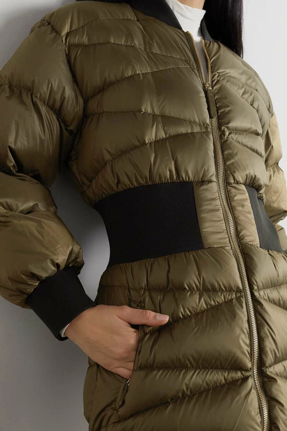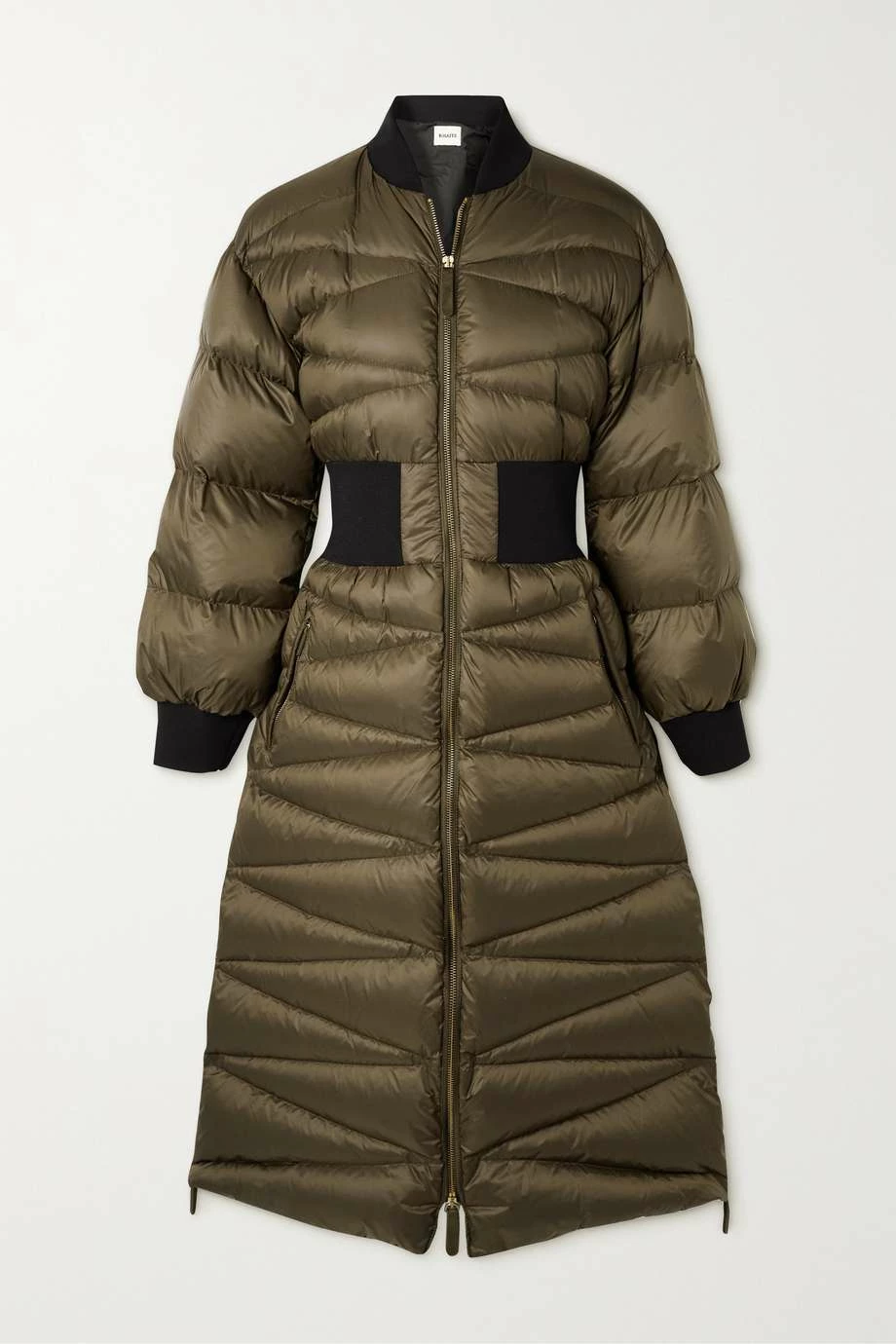Khaite’s jacket is made from lustrous brown shell that’s quilted with a geometric pattern and padded with down for plenty of warmth. Combining elements of bomber and puffy styles, it’s designed in a longline silhouette with oversized sleeves and contrasting ribbed trims, including a waist panel that defines your figure. The zippers at the hem adjust the shape.