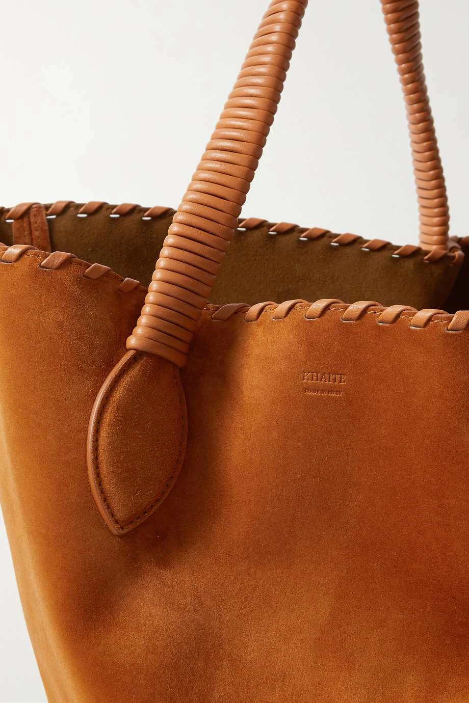 Khaite describes its collection of bags as ‘Luggage’, a testament to how well they slot into everyday travels. This spacious ‘Osa’ tote has been made in Italy from smooth suede and has a fanned-out shape. It’s trimmed with whipstiched leather and has a detachable zipped pouch to keep everything organized.
