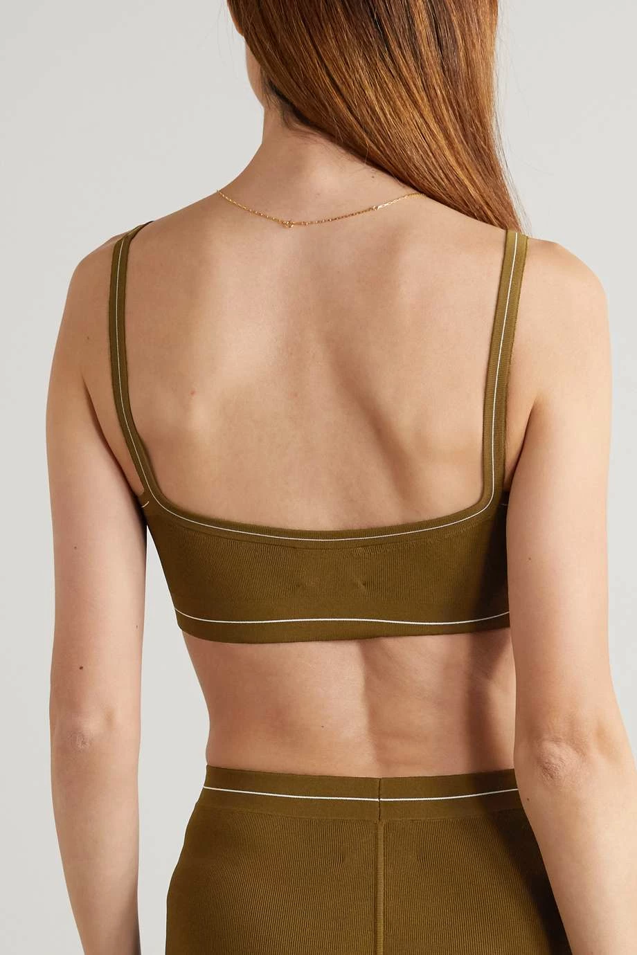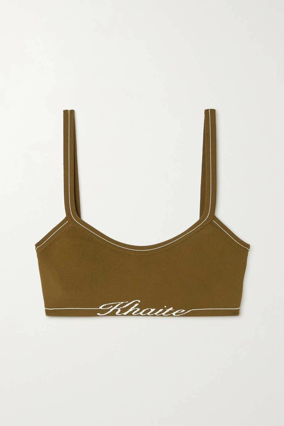 EXCLUSIVE AT NET-A-PORTER. Khaite’s ‘Carmelo’ bralette is a polished spin on sporty styles. Traced with a cursive version of the label’s moniker, it’s finely ribbed for a supple handle and light support. Wear yours to underpin a sharp blazer.