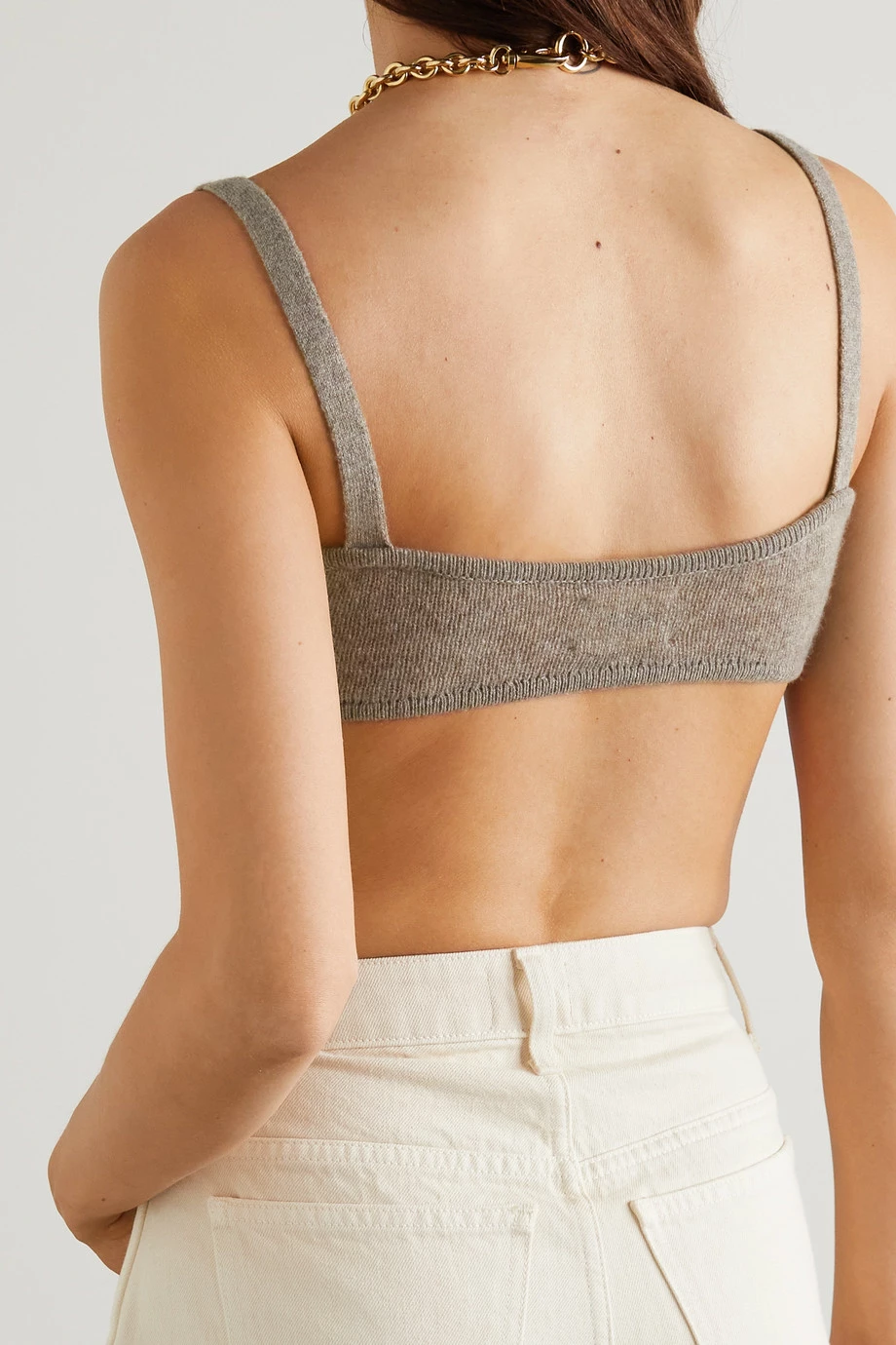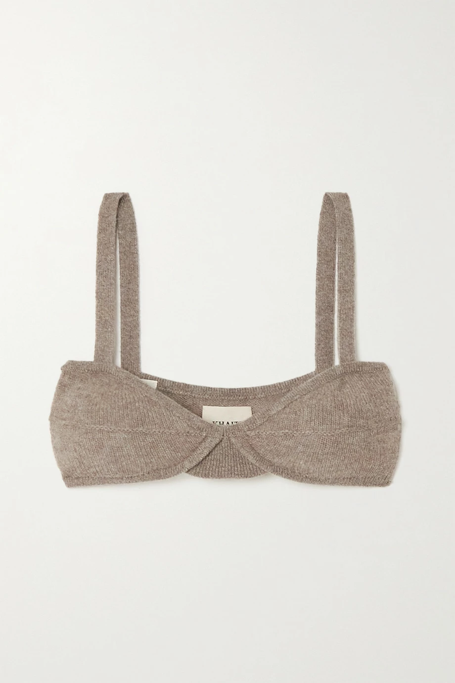 Katie Holmes put Khaite’s ‘Eda’ bra on the map when she was spotted wearing it with a matching cardigan shrugged just off the shoulder. Knitted from sumptuous cashmere, it has soft, seamed cups to gently support the bust.
