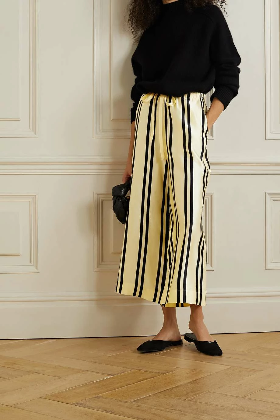 Khaite’s ‘Phoebe’ pants are cut from lustrous silk-satin printed with thick black stripes. Designed for a relaxed fit, they have wide legs fitted with on-seam pockets and a flexible drawstring waist.