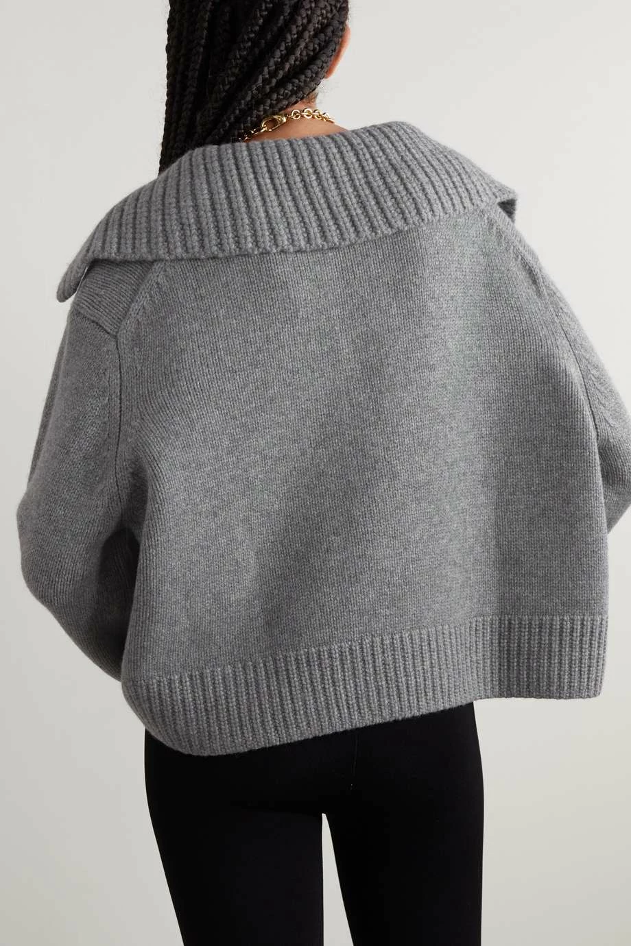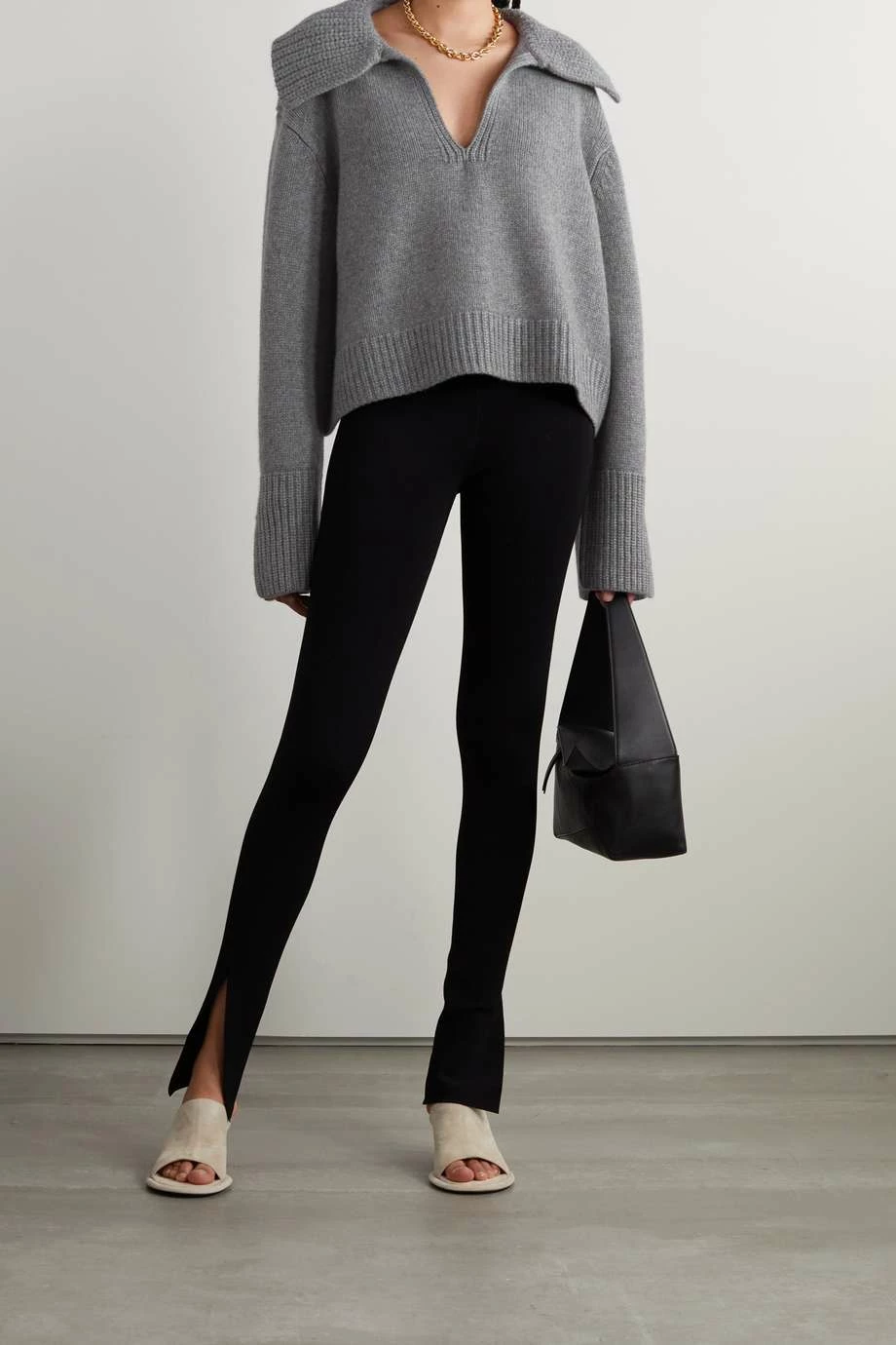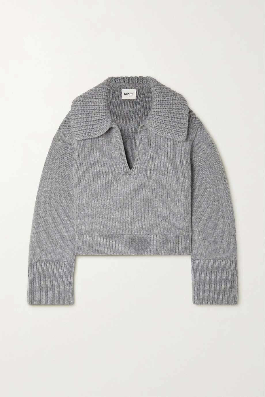 A lesson in how to nail exaggerated proportions, Khaite’s ‘Evi’ sweater is designed in an oversized silhouette enhanced by a dramatic polo collar that drapes over the shoulders. It’s made from plush cashmere and has split cuffs. Wear yours partially tucked into jeans or tailoring.