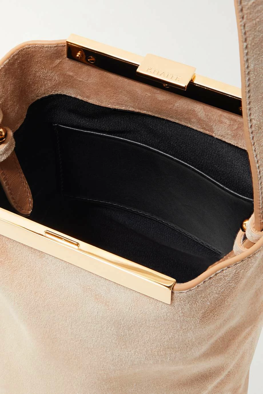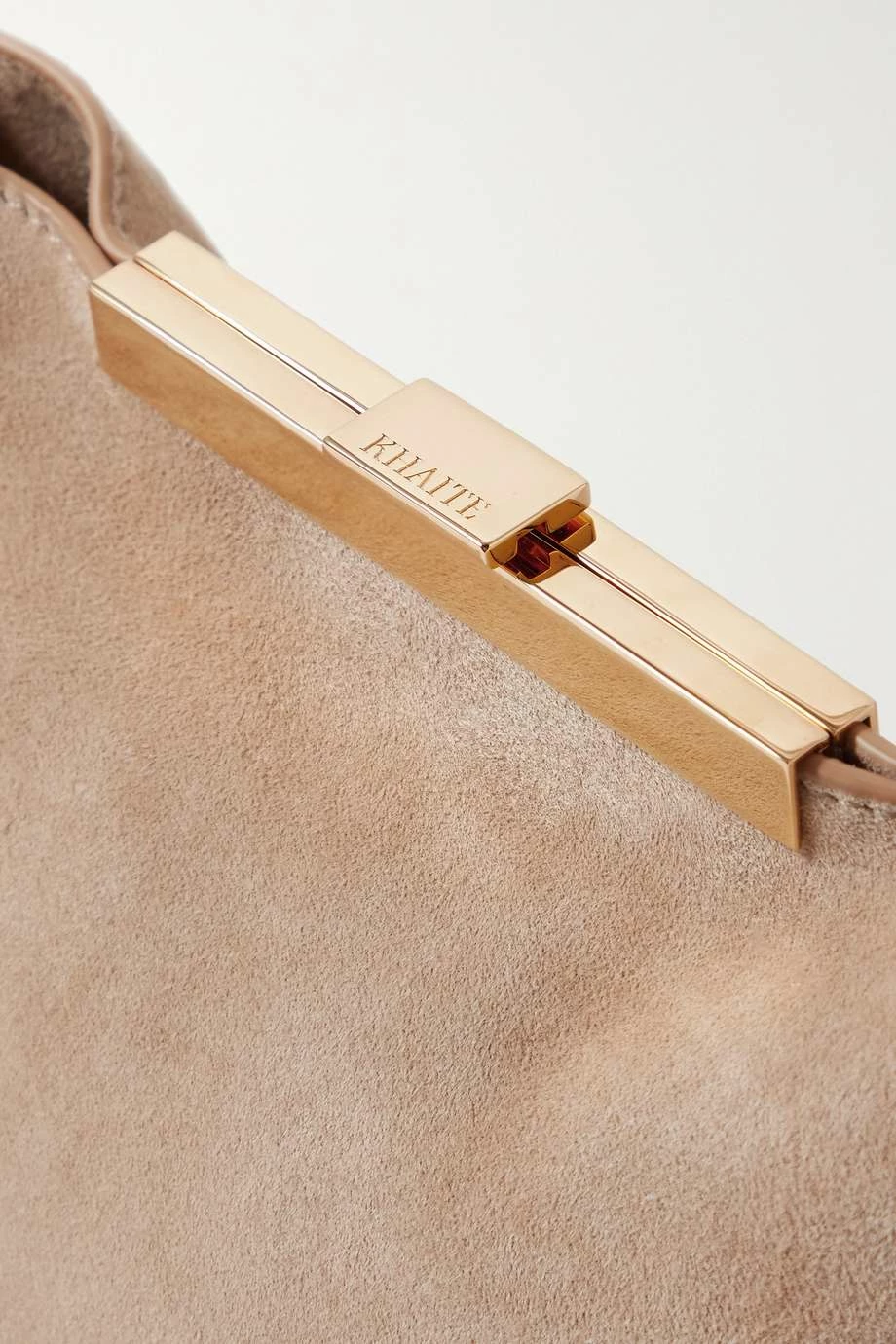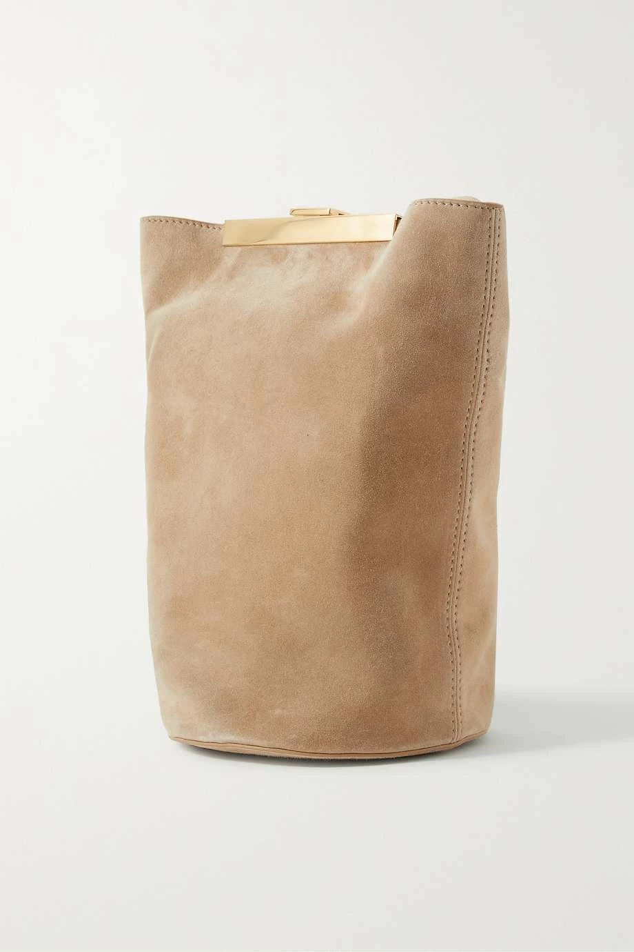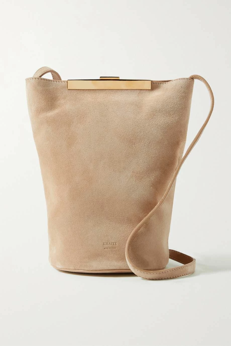 Khaite’s ‘Etta’ bucket bag is inspired by travel and designed for the practicalities of day-to-day life. Crafted in Italy from soft suede, it’s is lined in durable cotton-grosgrain and has a gleaming gold-tone frame. The shoulder strap is adjustable, so you can lengthen the drop to carry it cross-body.