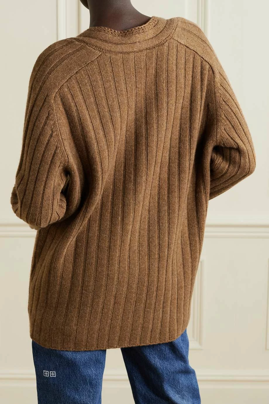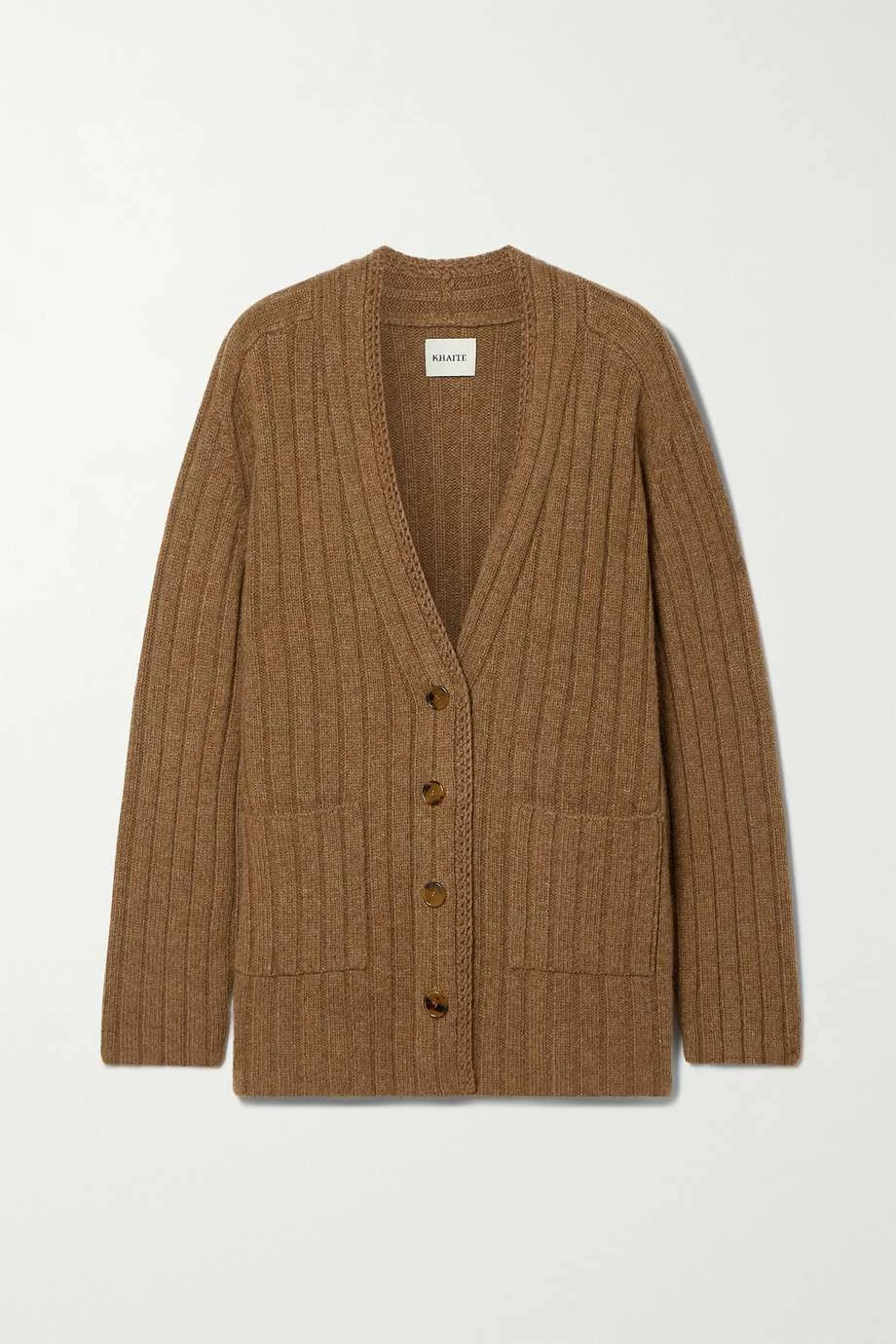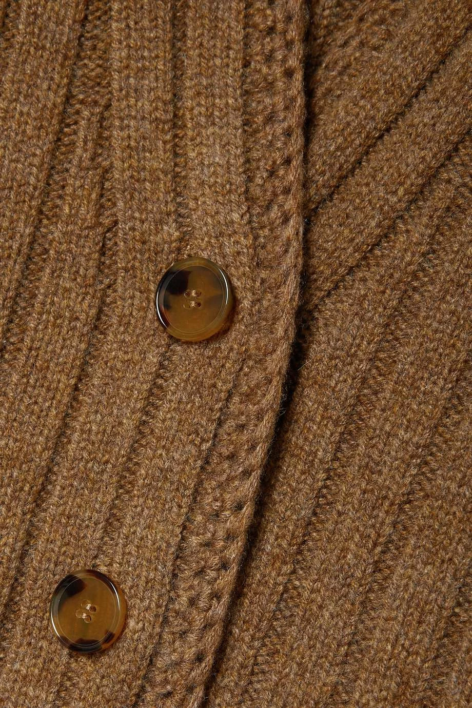 Khaite’s ‘Buffy’ cardigan is made from ribbed cashmere in a rich ‘Walnut’ color and has tonal tortoiseshell-effect buttons. Designed in a relaxed shape, it’s long in the body and has dropped shoulders and knuckle-grazing sleeves. Underpin yours with a bralette or crisp collared shirt.