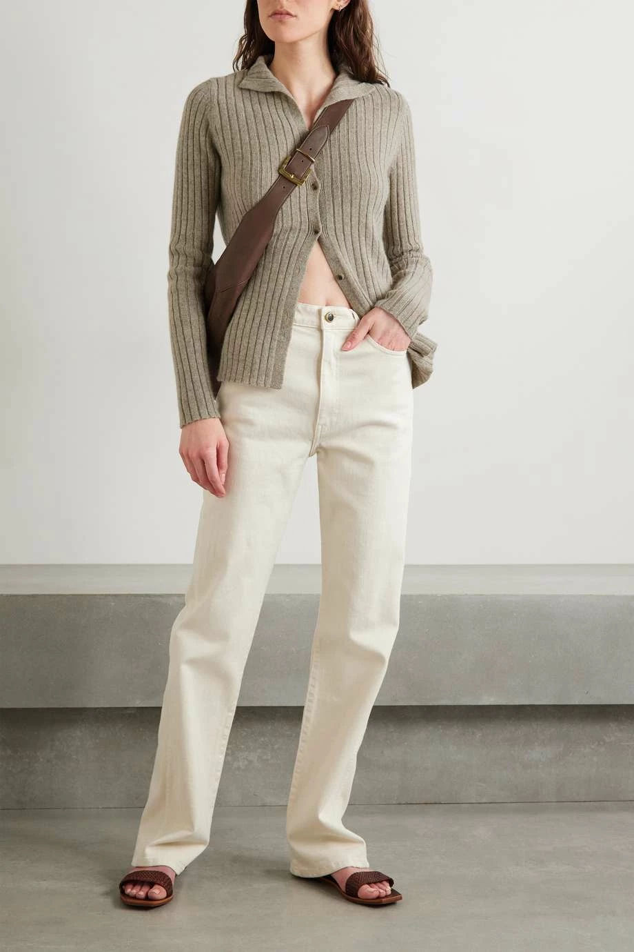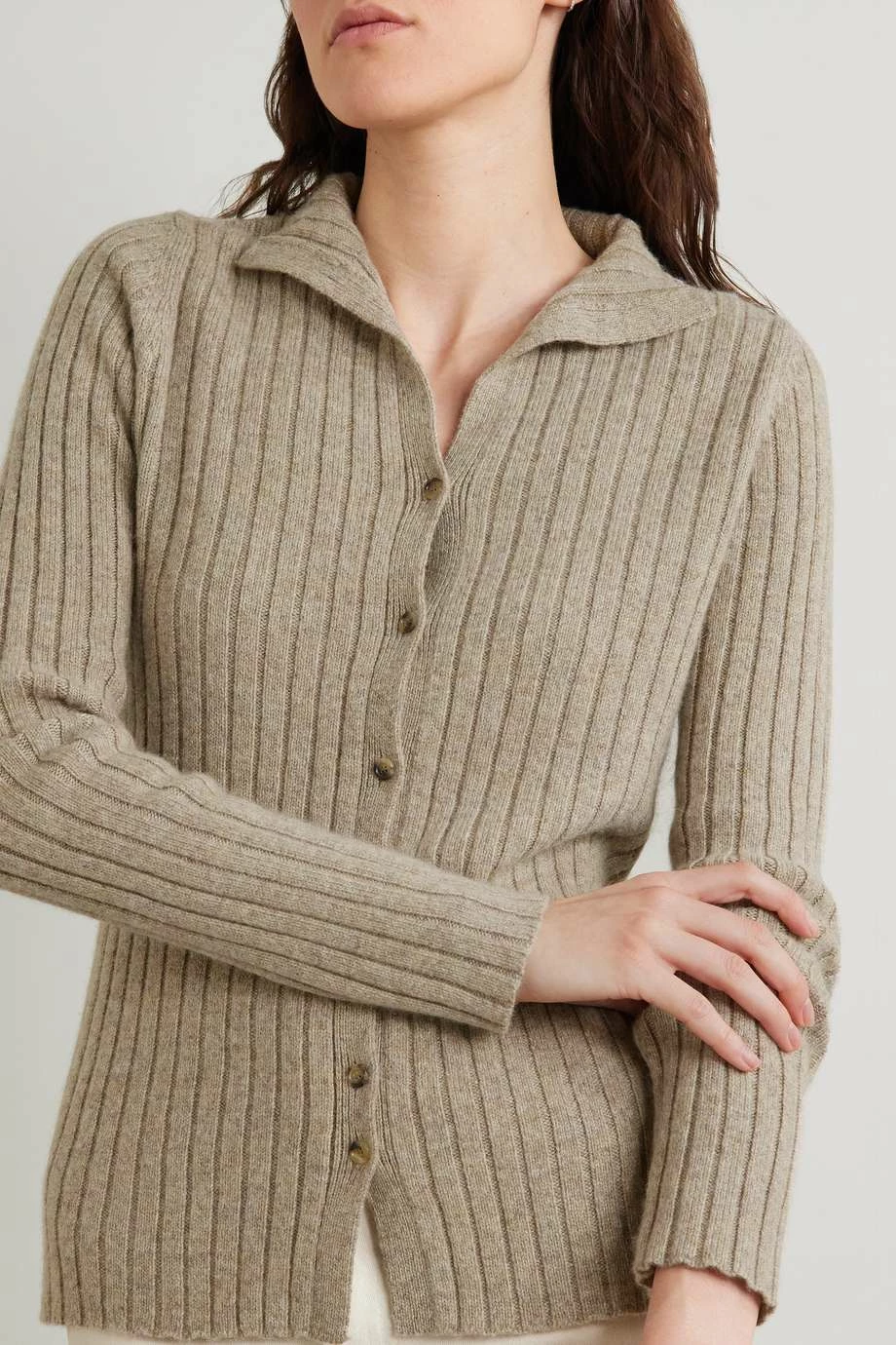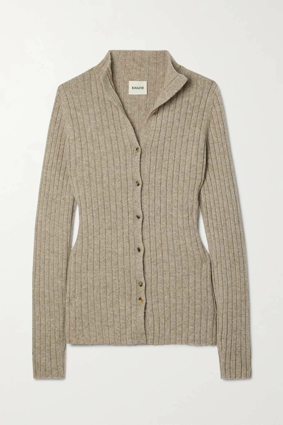 Khaite has mastered the art of timeless and effortless designs that you’ll reach for year after year. This ‘Juni’ cardigan is made from ribbed cashmere in a creamy ‘Sepia’ shade with a stand-collar and tortoiseshell-effect buttons. Wear yours with relaxed tailoring.