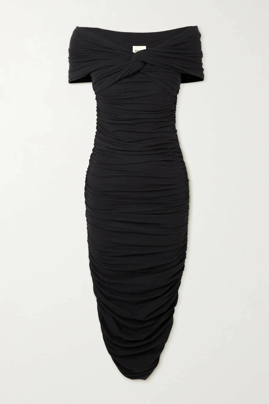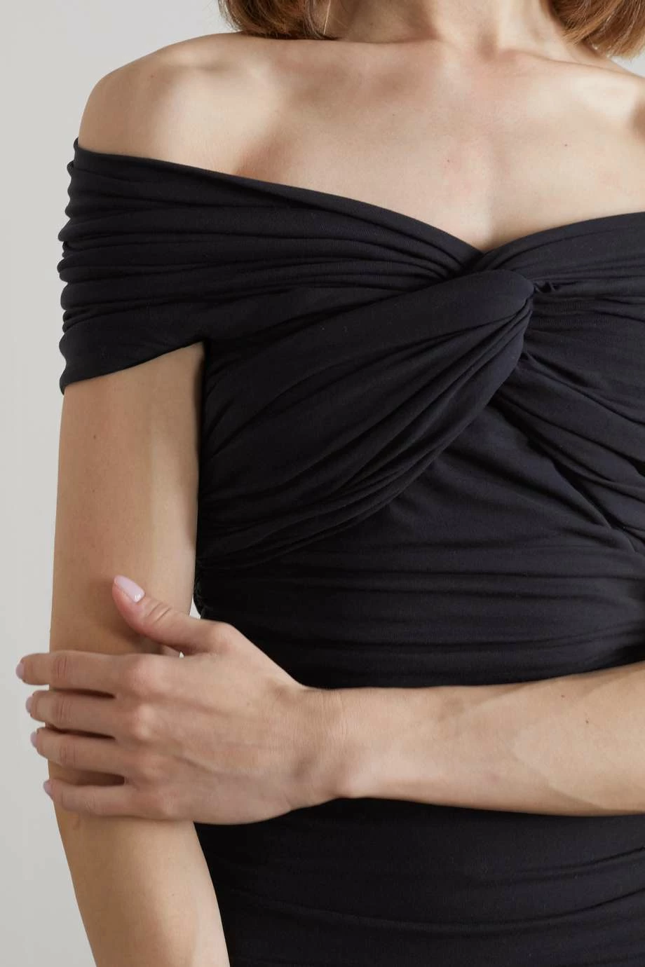 Khaite’s ‘Spence’ dress is proof that ease and elegance do go hand in hand. It’s made from ruched stretch-cotton jersey that hugs every curve and is knotted at the front to highlight the chic off-the-shoulder silhouette. Wear yours to dinner with heels.