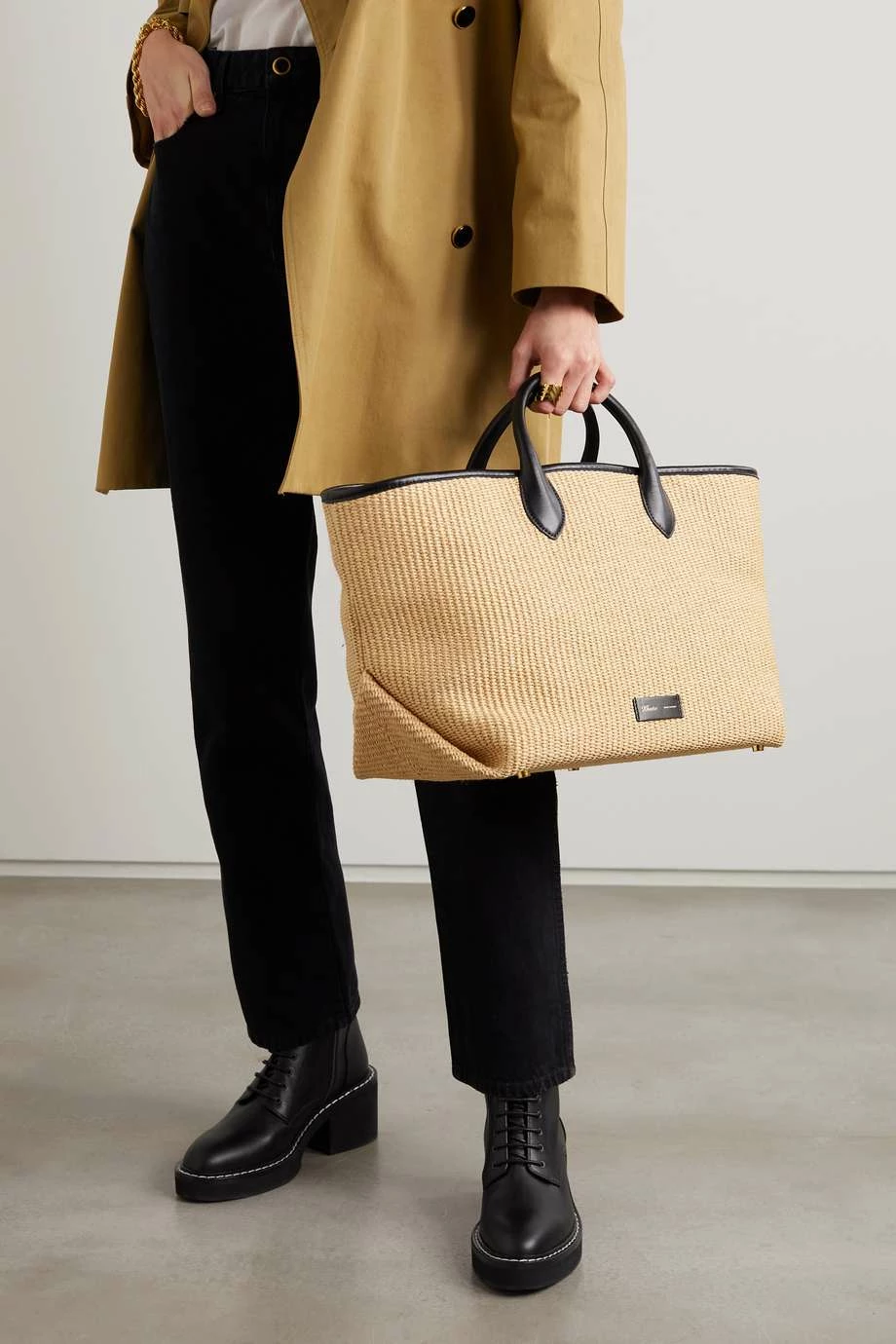 Khaite’s ‘Amelia’ tote is made from woven raffia and trimmed and lined in leather, which elevates the simple shape. The sculptural folded base is a brand signature. Keep your keys or most-used card in the interior zipped pocket.