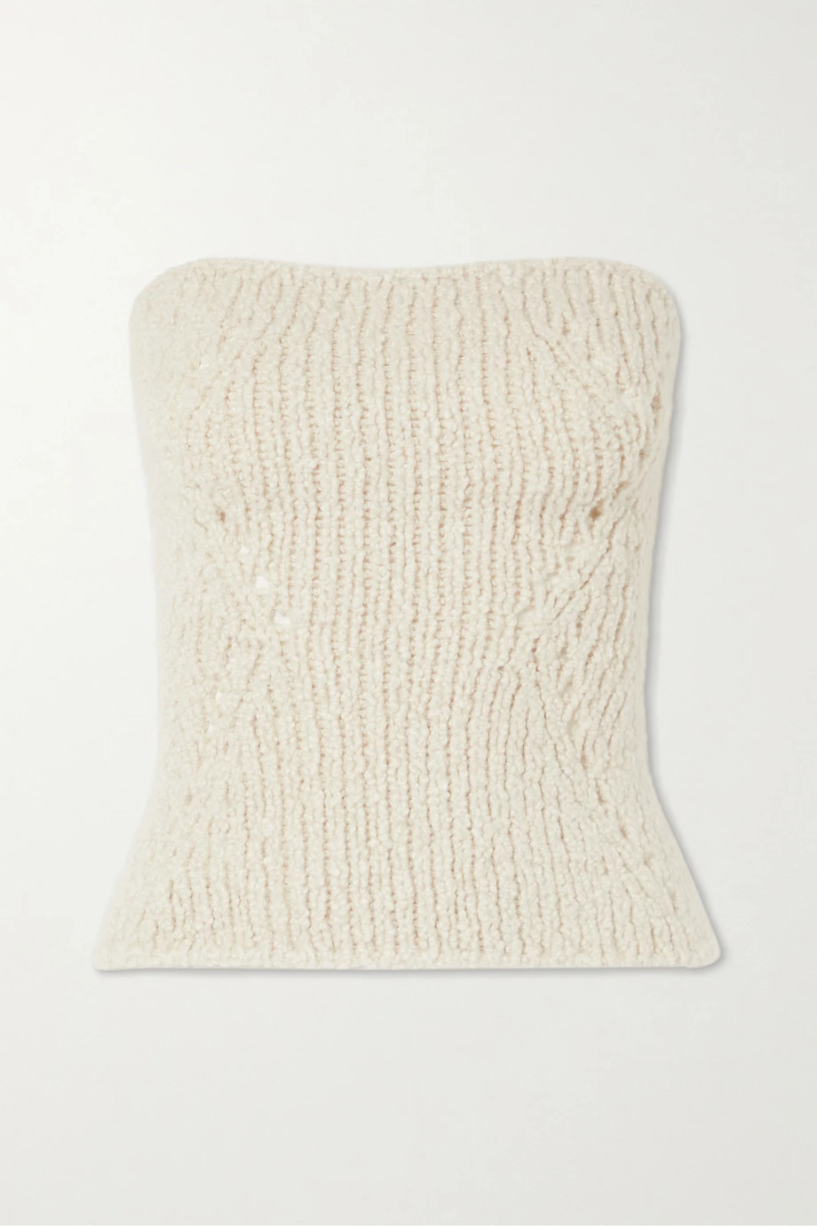 Though it’s just as stunning worn alone with exposed collarbones, Khaite’s ‘Charlie’ sweater looks chic layered over a crisp white shirt. Stretchy and soft, it’s knitted from cashmere in a versatile ivory hue.