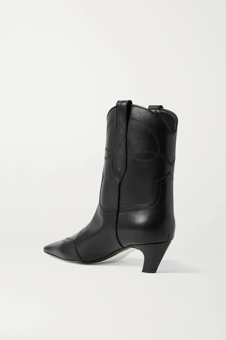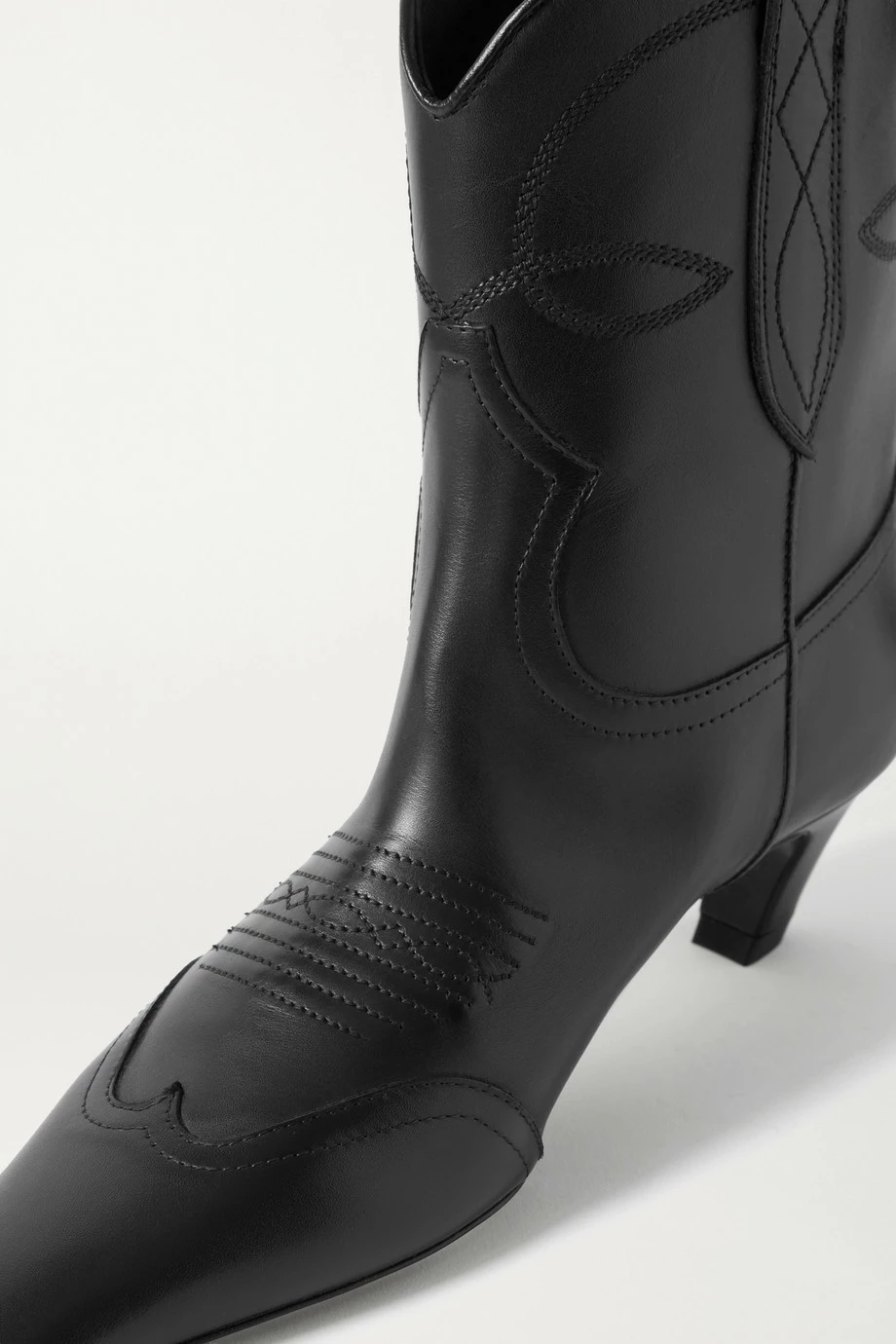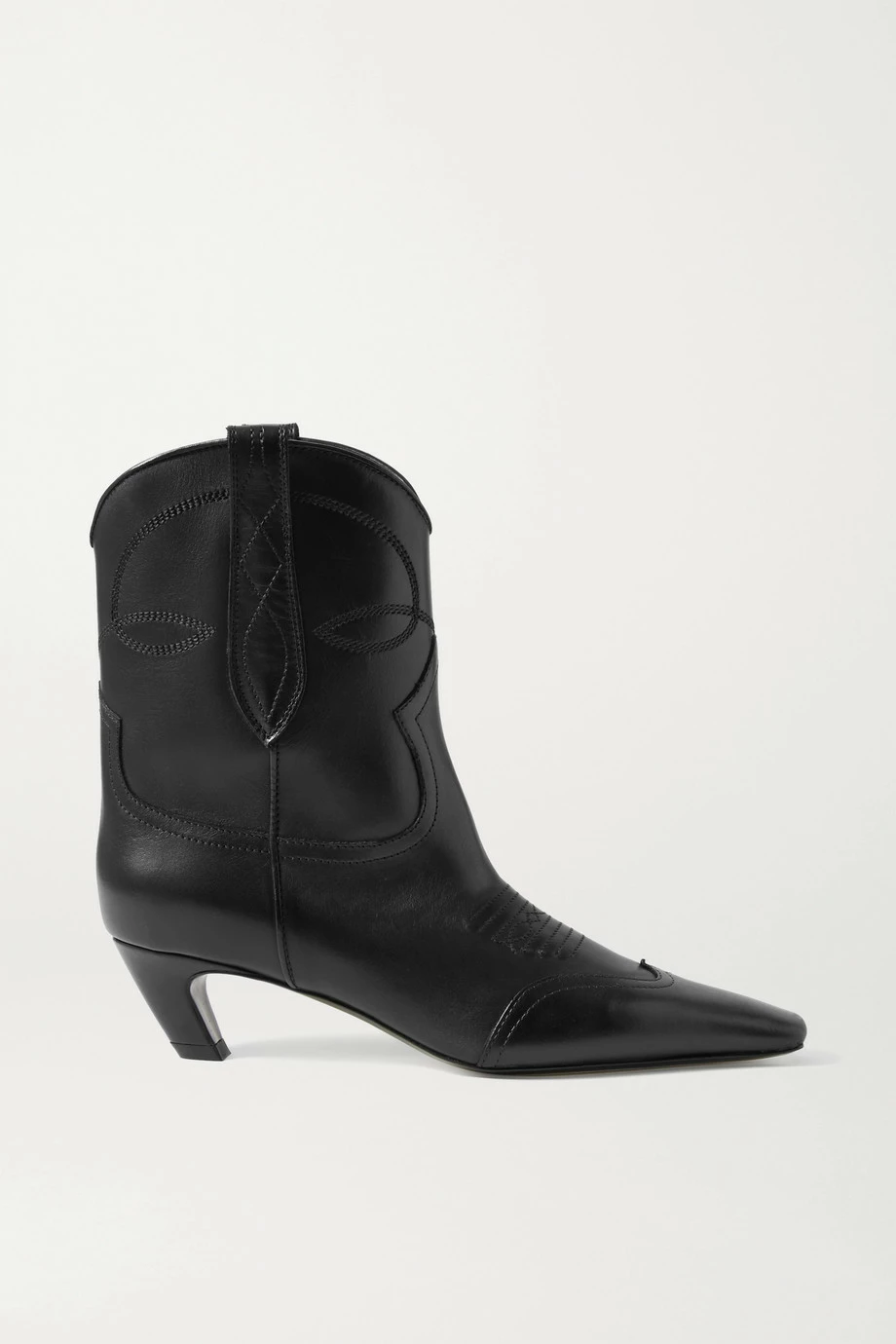 Khaite’s leather ‘Dallas’ ankle boots are inspired by classic cowboy styles – the curved cuffs are detailed with pull tabs and swirling embroidery, just like the real things. They’ve been crafted in Italy with curved heels that offer 50mm of lift. Wear them with midi dresses or slim jeans.