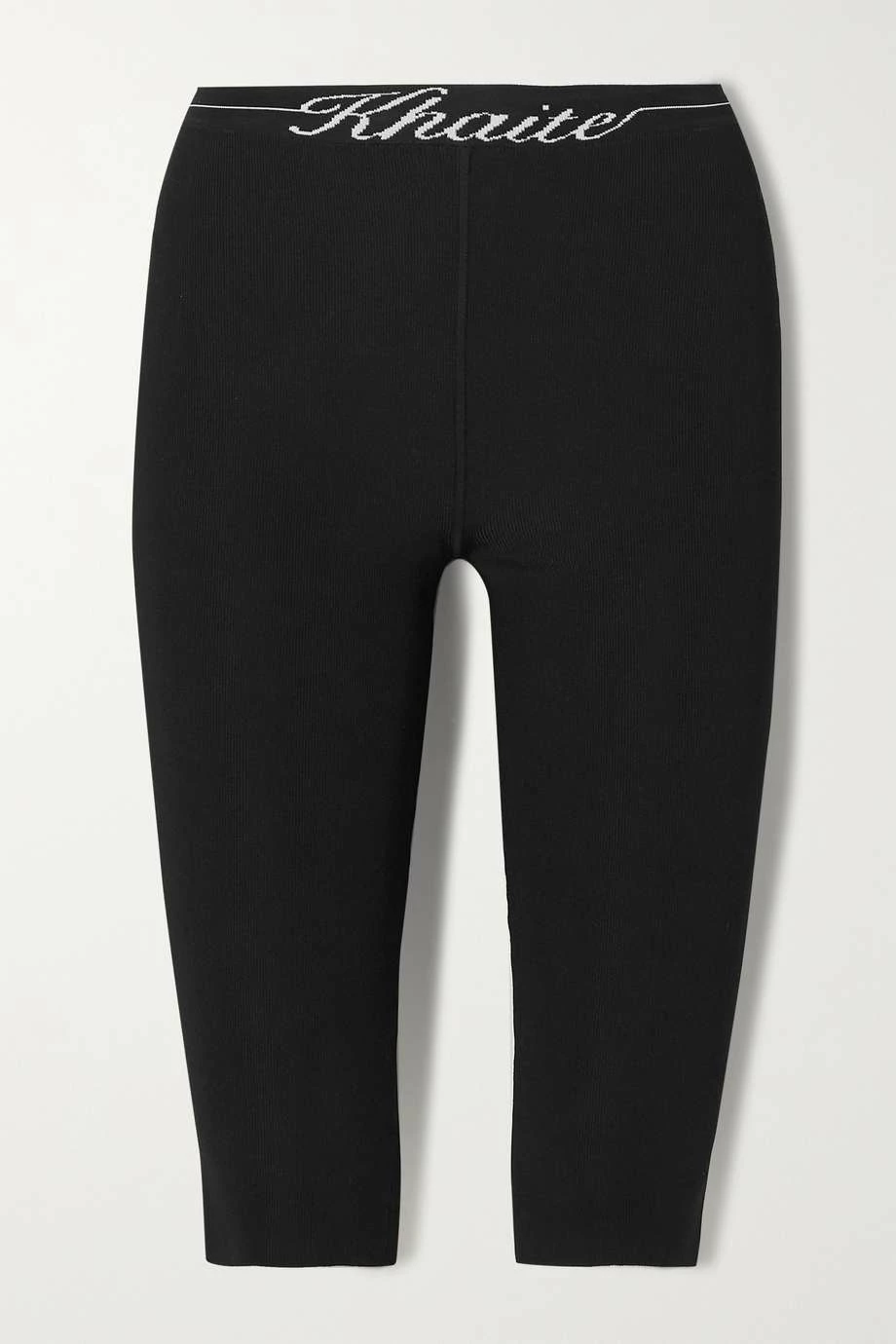 Khaite’s cycling-inspired ‘Harden’ shorts are cut from finely ribbed stretch-jersey that hugs your silhouette without feeling restrictive. The elasticated waistband is woven with an emblem in elegant cursive script. Wear them with a sports bra or tonal sweater.