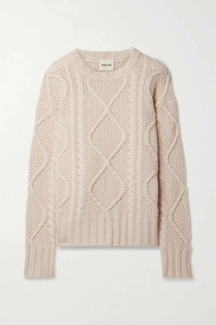Khaite’s ‘Mafalda’ sweater is a timeless and versatile choice for any well-curated wardrobe. It’s made from soft cashmere with cable-knit stitching and has ribbed trims. Style yours with relaxed tailoring.