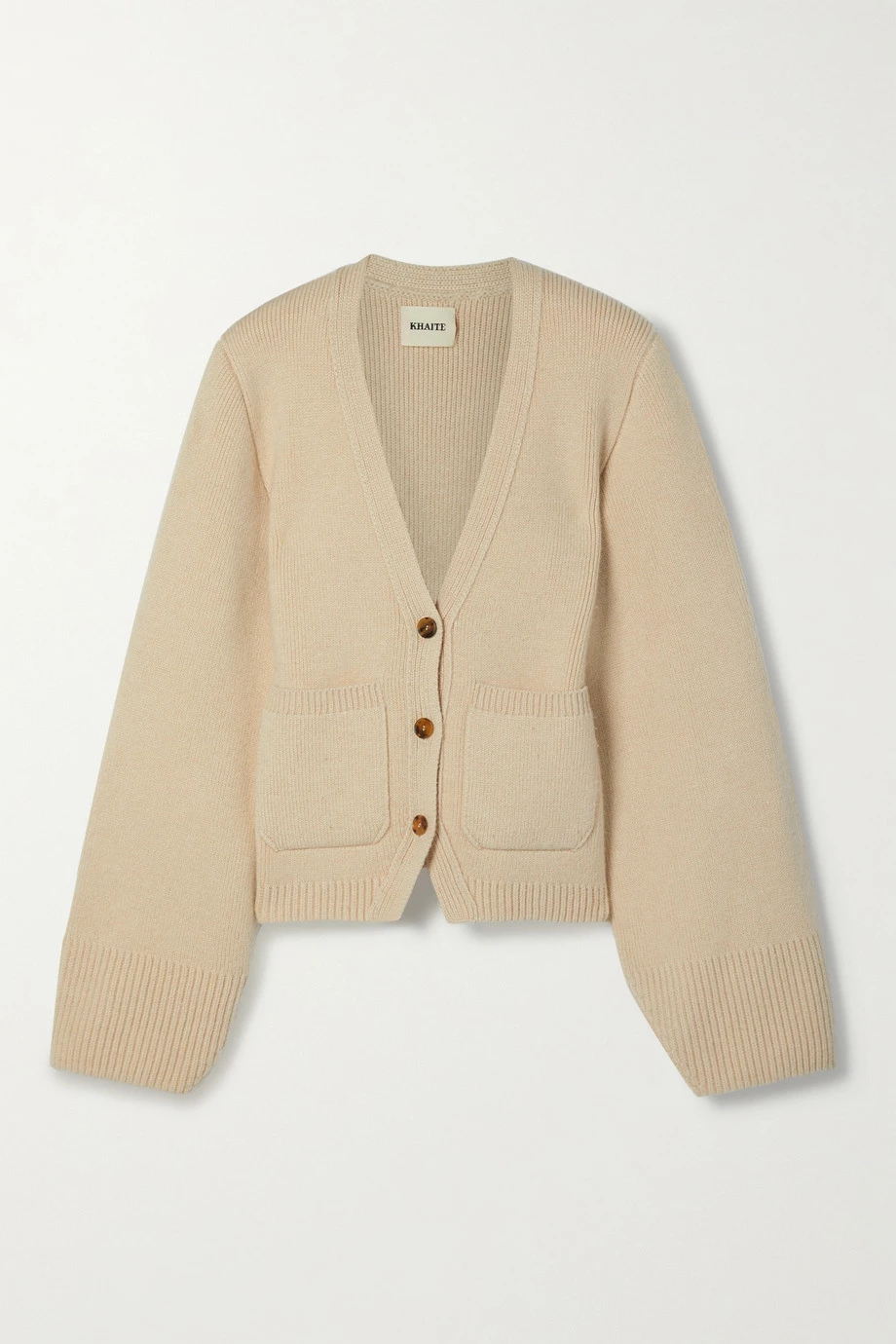 Khaite’s ‘Scarlet’ cardigan is crafted from Mongolian cashmere, specifically chosen for its exceptional softness. In a versatile beige hue, it’s designed for a relaxed fit and has long, knuckle-grazing sleeves and cozy ribbed trims. Wear it with the top button undone, showing off the matching ‘Eda’ bra.