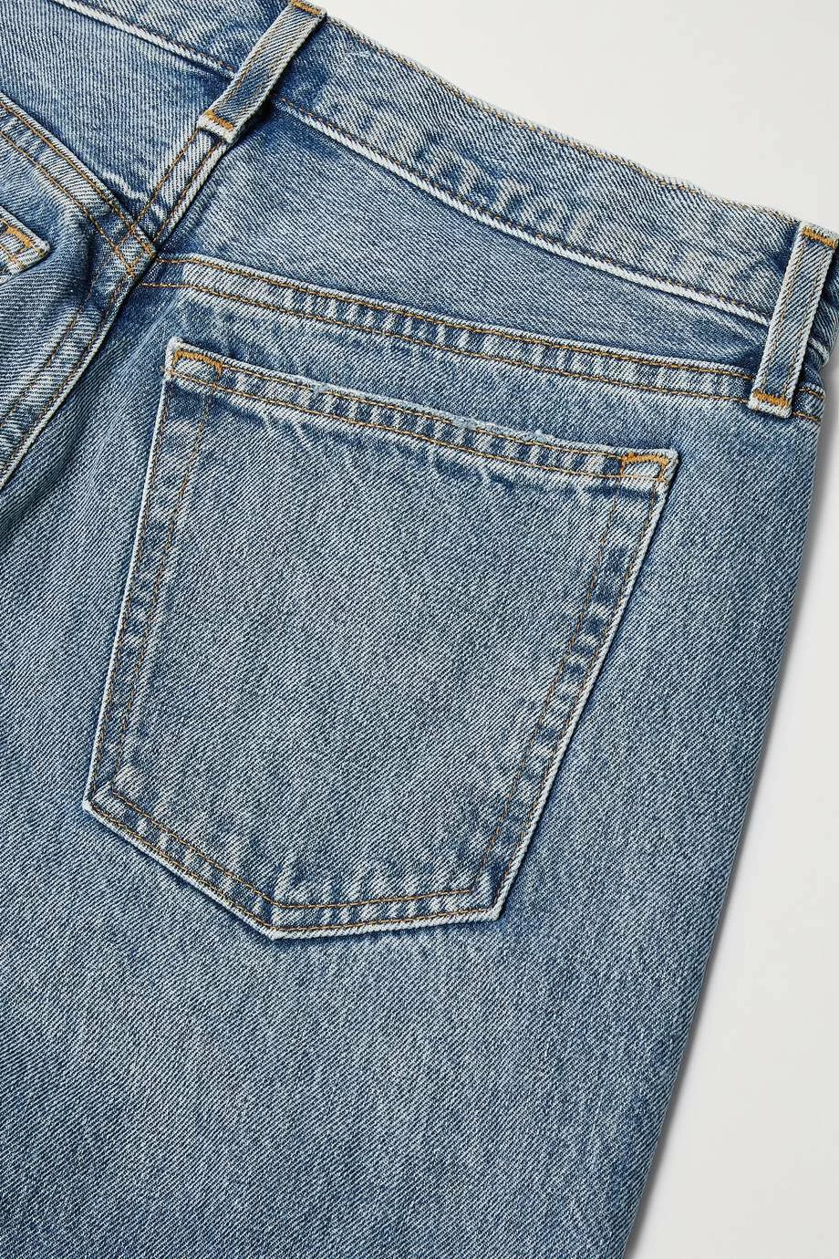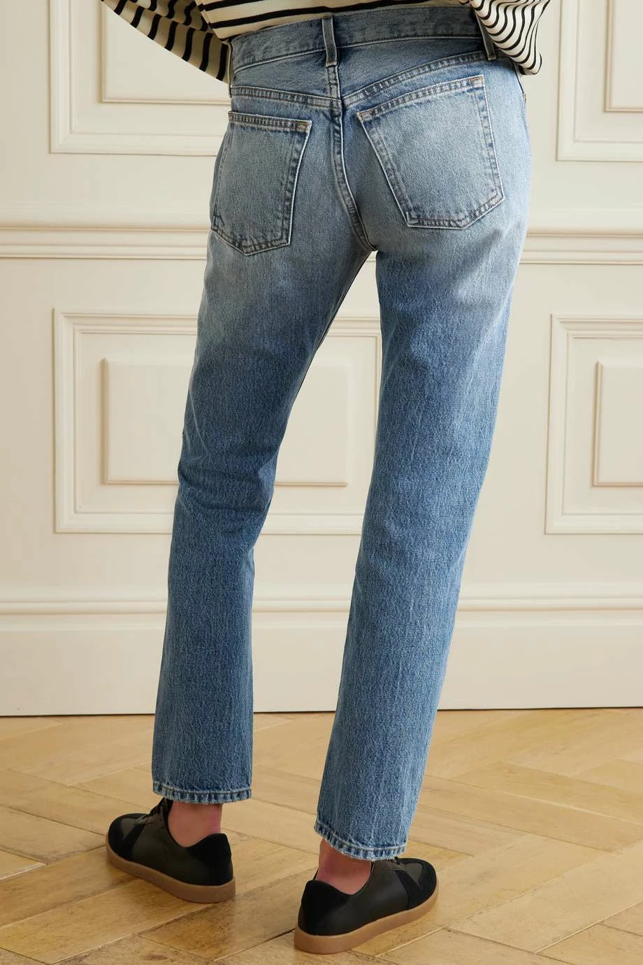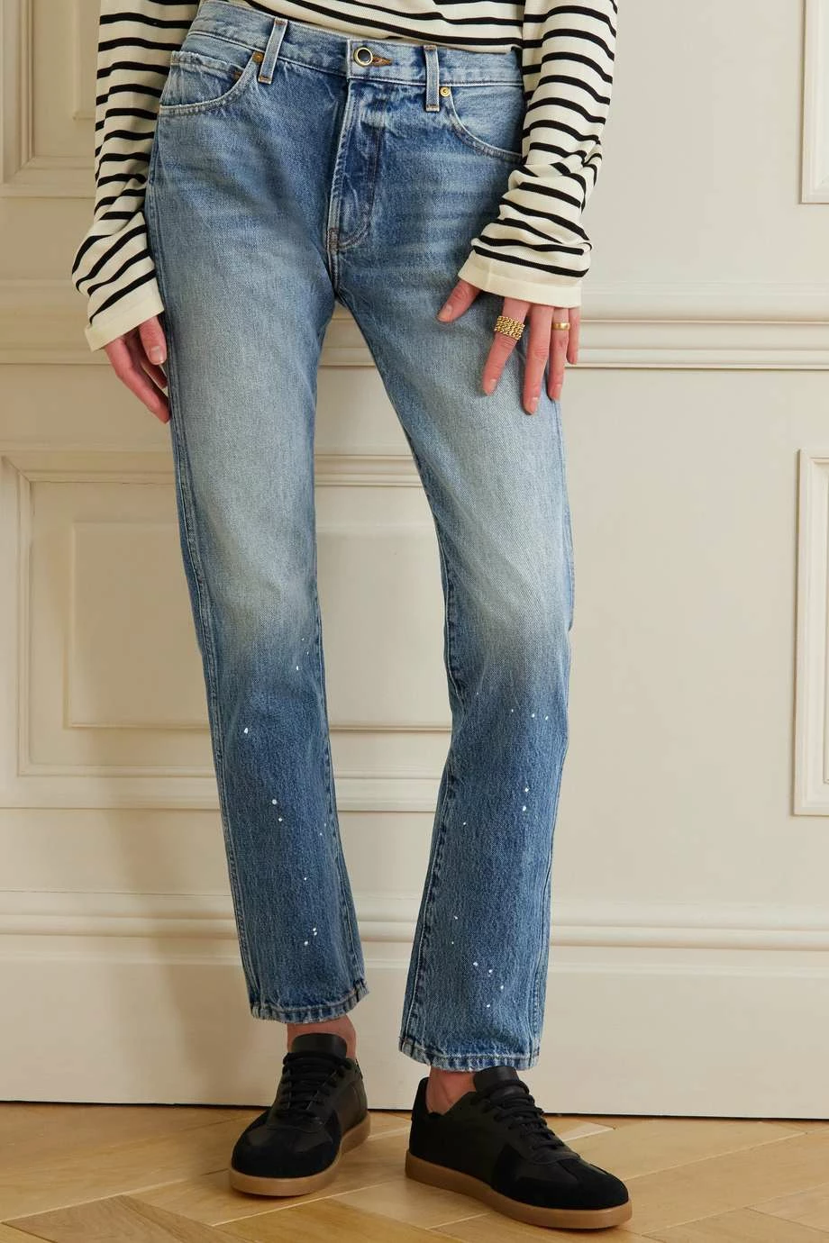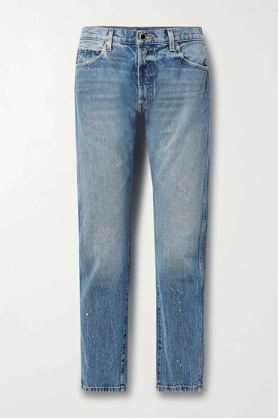 Catherine Holstein carefully considers every detail of Khaite’s jeans – from the handle of the denim to the placement of the pockets – to ensure that they not only fit well, but inspire confidence while you’re wearing them, too. This ‘Kyle’ pair has a low-rise waist and straight-leg shape with distressing and is decorated with a subtle paint splatters at the hem. Try them with a cinched blazer and sandals