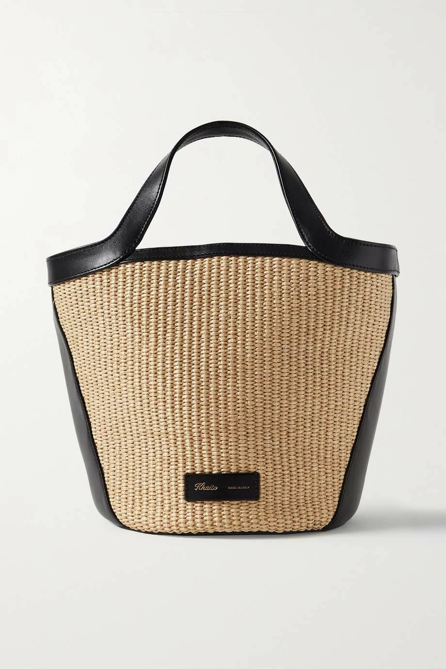 Khaite’s ‘Nora’ tote is made from a combination of woven raffia and contrasting black leather panels that create cool textural contrast. Designed in a generous silhouette with an open top, it has enough space in the shell-lined interior for a tablet and spare flats, plus there’s a zipped compartment for smaller items.
